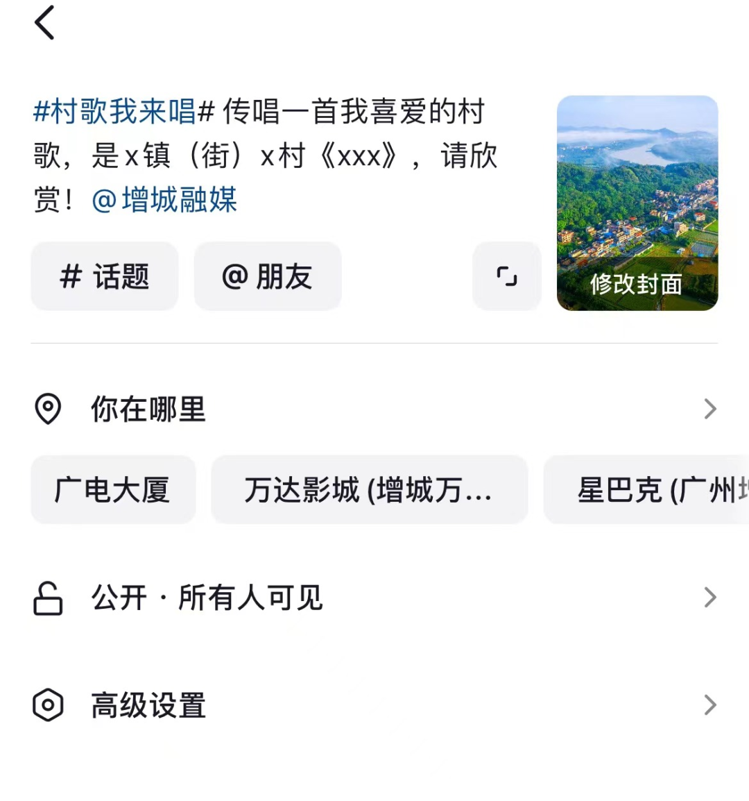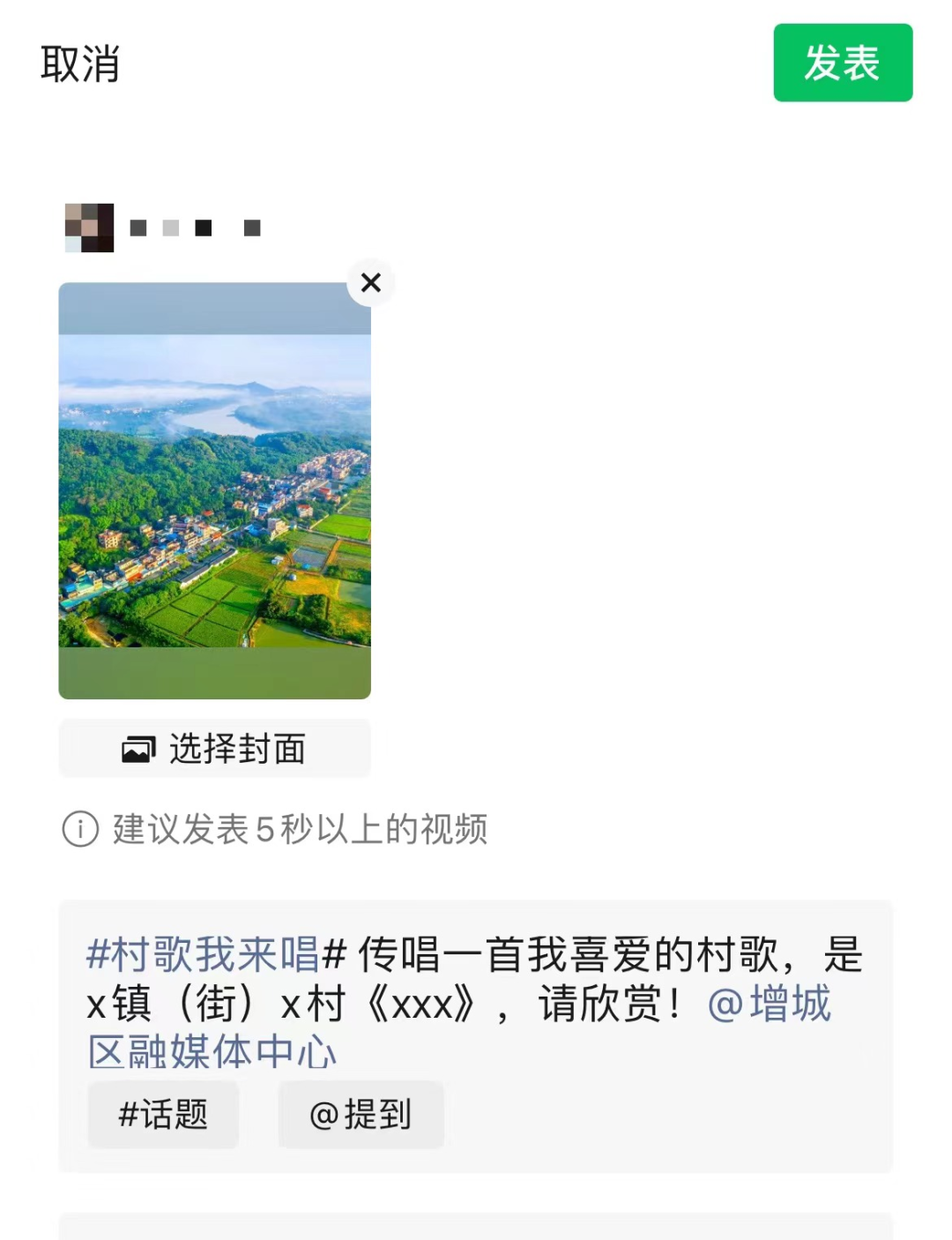 1.发表短视频时,在微信视频号发布的视频文案未标注标签#村歌我来唱#并@增城区融媒体中心的,在抖音APP发布的视频文案未标注标签#村歌我来唱#并@增城融媒的,均视为未成功参与活动。