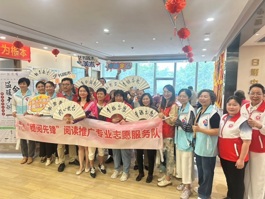 广图“穗阅先锋“美育志愿者代表、广州市志愿者协会会员与老人们合影。