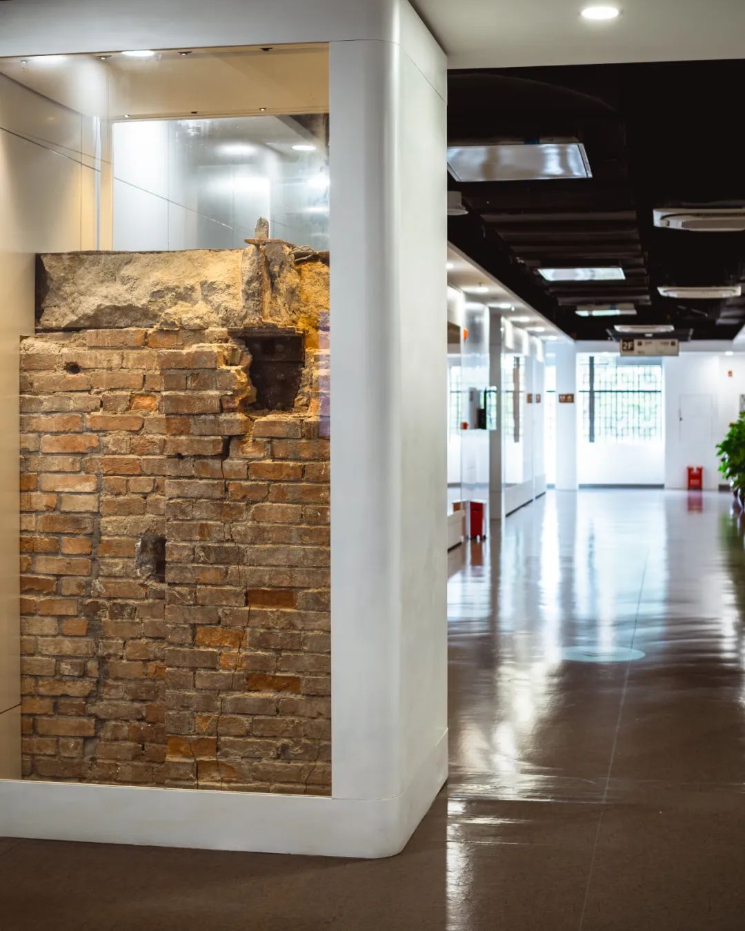 如今走在广州华侨博物馆里,从大门开始的每一层,我们都能看到原有的旧结构和旧墙体。