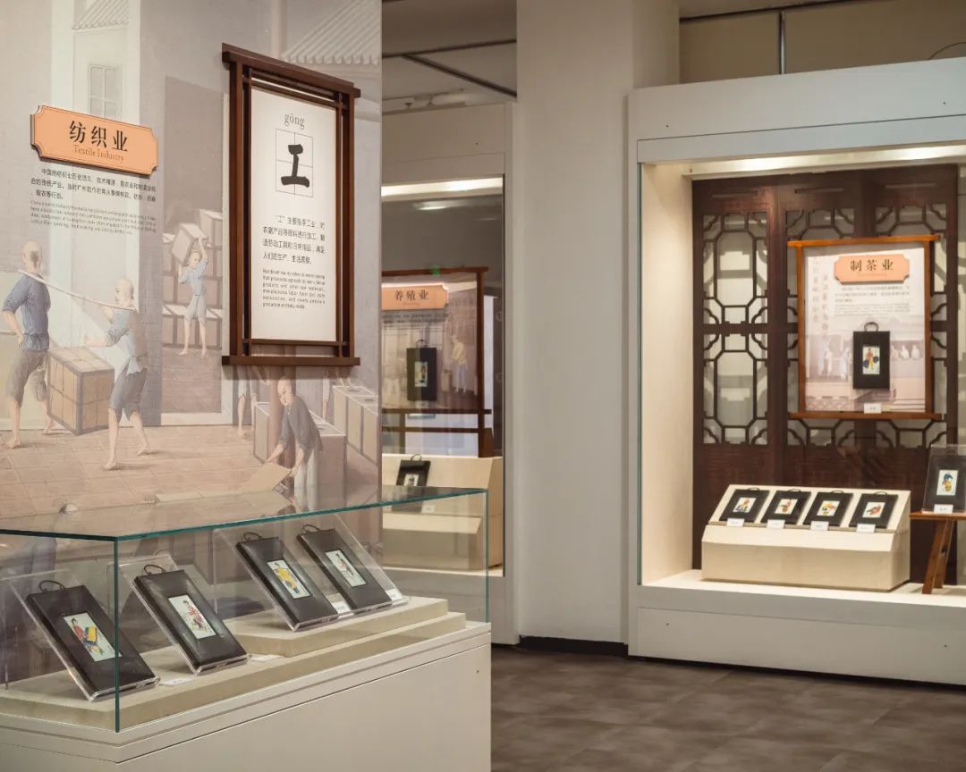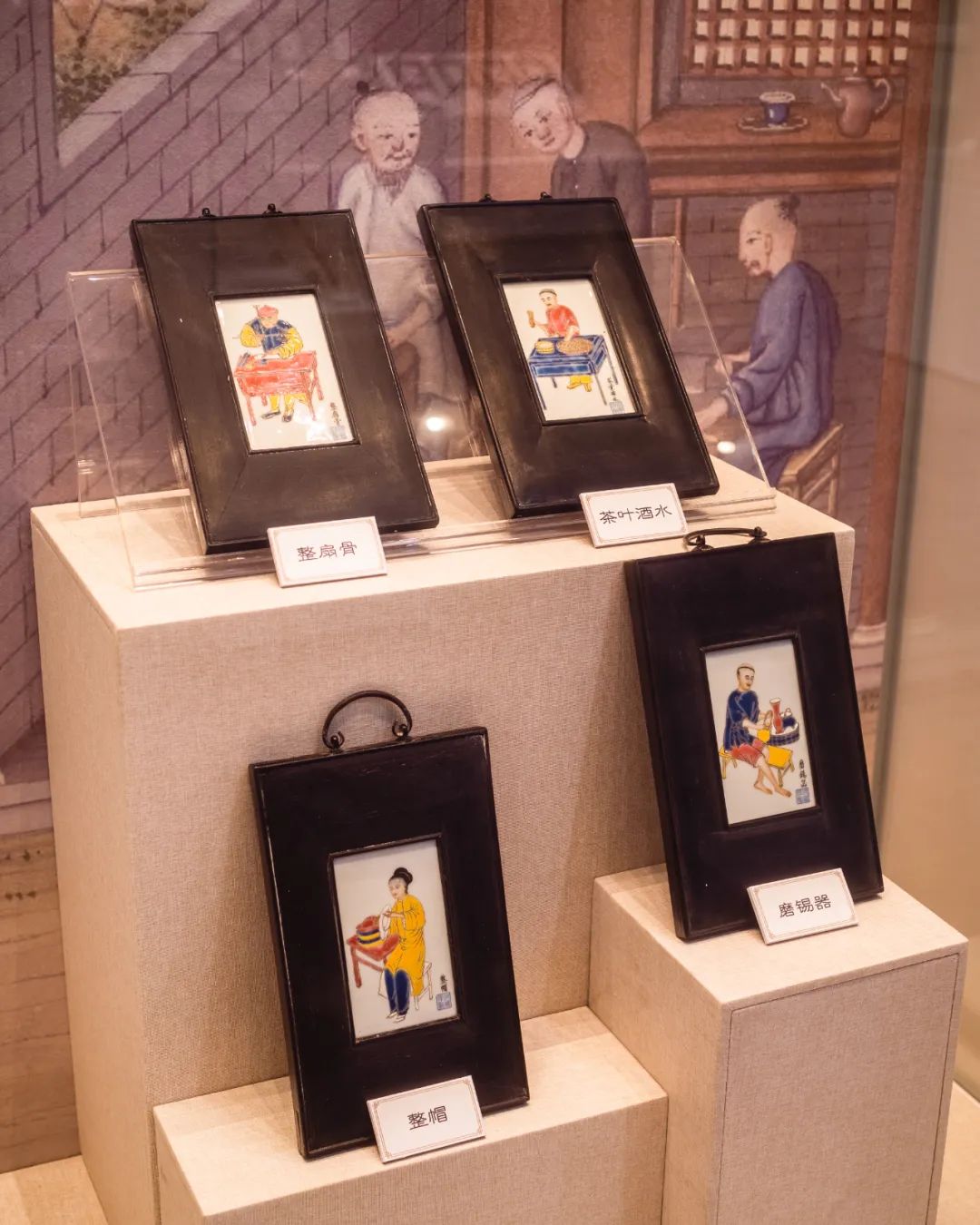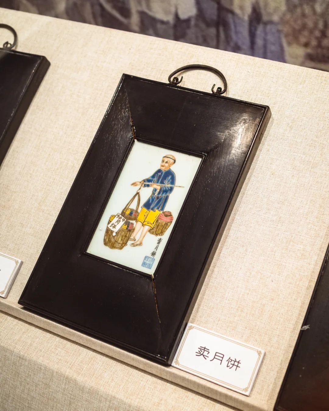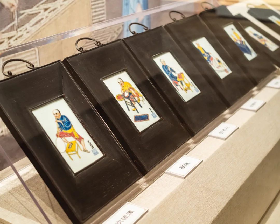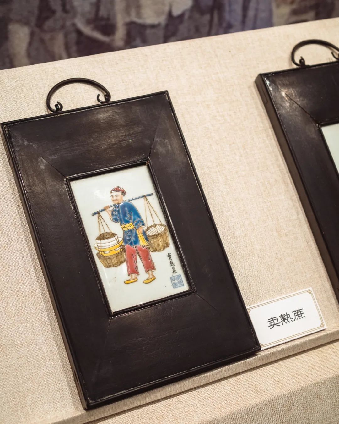 在广州华侨博物馆的一些展厅,还能看到一些有趣的展品,比如这个粉彩瓷板画专题展,展示了近代各行各业从业者的画像,可以说是烧绘在瓷板上的“百工记”。