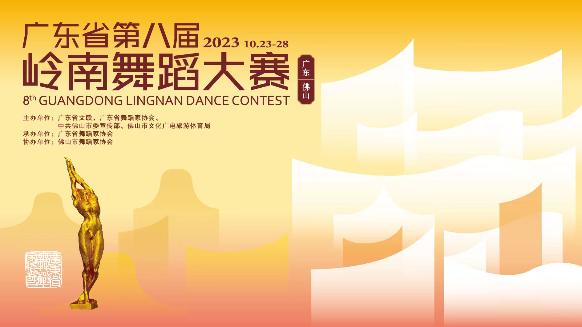 由广东省文联、广东省舞蹈家协会、中共佛山市委宣传部、佛山市文化广电旅游体育局主办的“广东省第八届岭南舞蹈大赛”将于2023年10月23日—10月28日在佛山大剧院举行。