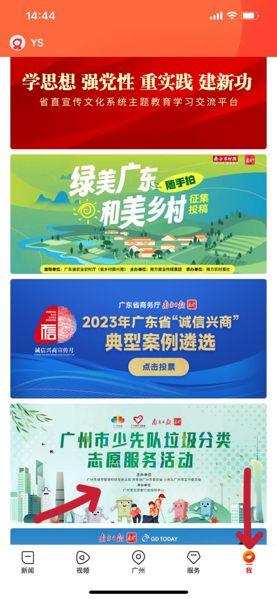 二、在“我”页面,找到精选活动中的“广州市少先队垃圾分类志愿服务争章活动”