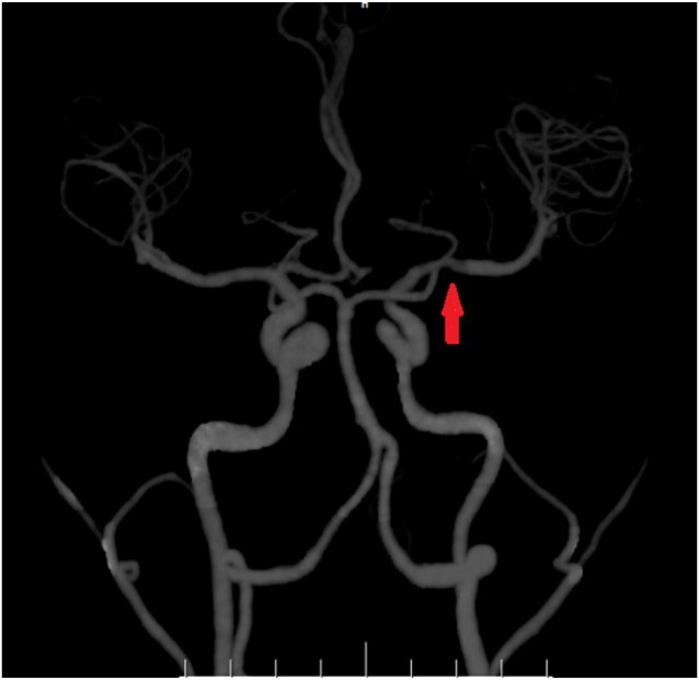 CTA提示:左侧大脑中动脉M1段节段性狭窄。