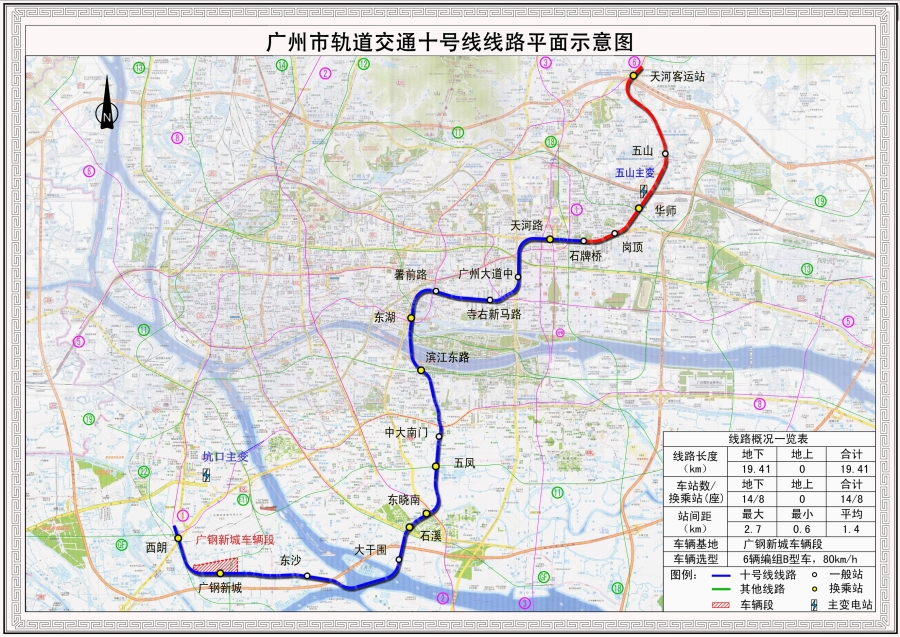 地铁10号线呈东北—西南走向,斜穿广州市中心区,贯穿天河商业中心、珠江新城等城市核心区,连接天河、越秀、海珠、荔湾四个行政区,是填补广州市中心区轨道空白的“加密线”,对缓解中心城区交通压力具有重要意义。该线共设有14个区间,隧道多采用盾构法施工,由于沿线地质条件复杂,需攻克下穿建筑物群、既有运营地铁隧道群和珠江航道等施工难题。