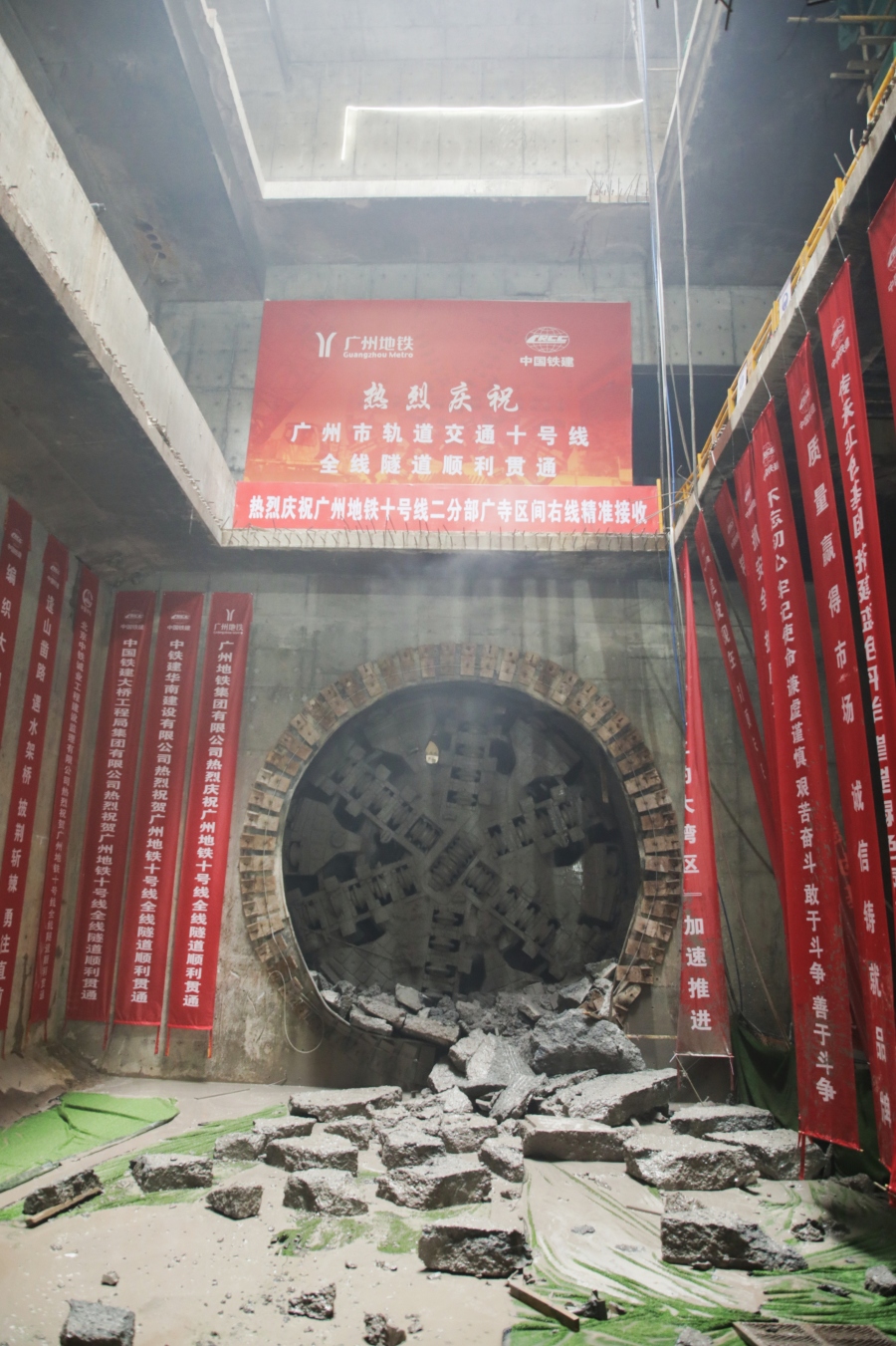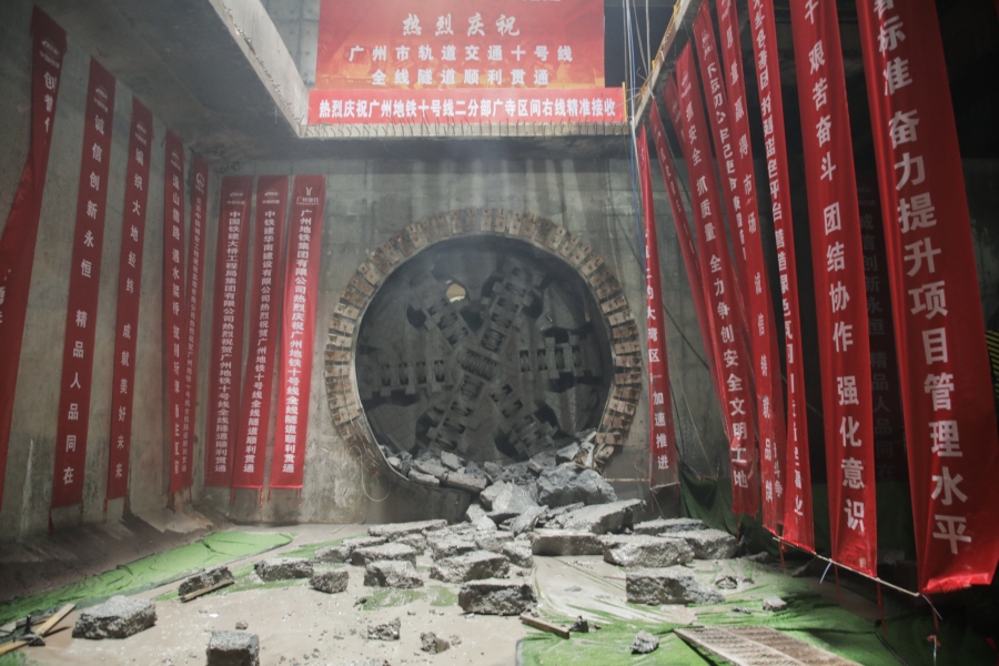 25日,随着最后一个区间的盾构机破壁而出,广州地铁10号线“西塱-天河路”段隧道全部贯通,为线路分段通车提供条件。