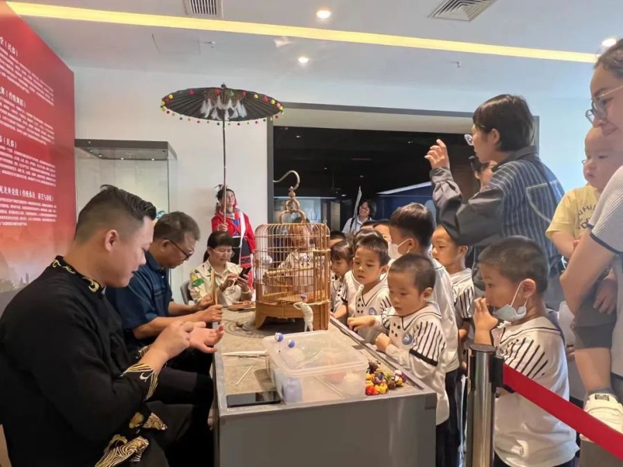 开幕式当天,色彩斑斓的瑶族服饰、古朴而灵动的瑶族布袋木狮狮头、意境深远的“立体山水画”——英石碟景、惟妙惟肖的萧派面塑作品,以及精选的民俗类非遗、清远美食技艺非遗图片,让观众纷纷驻足细看;清远非遗体验互动现场,游客满盈。别致的小鸟笼、可爱的卡通面塑、瑶族小香袋,在传承人的精工巧手下完成,令观众称赞不已。