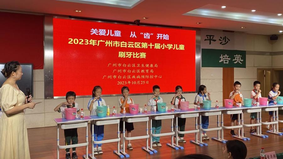 为进一步推进广州白云区“全国爱牙日”系列宣传活动,普及爱牙护牙知识,促进儿童养成正确刷牙习惯,10月25日,白云区在平沙培英学校举办“关爱儿童——从‘齿’开始”广州市白云区第十届儿童刷牙比赛。本次比赛共有50名小学生参赛,分别来自平沙培英学校、清湖小学、石马小学、平沙小学和平安小学。