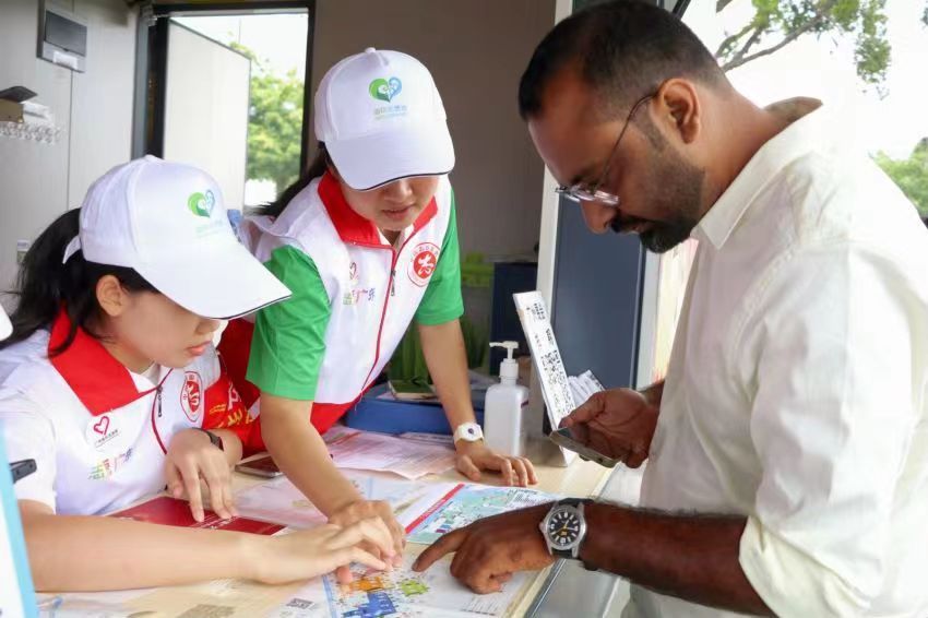 在广交会现场,志愿服务驿站成为显眼的标志。驿站既是志愿者的大本营,也是海珠文旅宣传的展示区,更是为客商提供服务的根据地。海珠区团委结合“我为群众办实事”实践活动要求,在广交会展馆周边设置4个志愿服务驿站。本次驿站设计融入海珠地标,展现了广州塔、琶洲塔、十香园、大元帅府等景点照片,邀请广大中外客商感受广府文化。