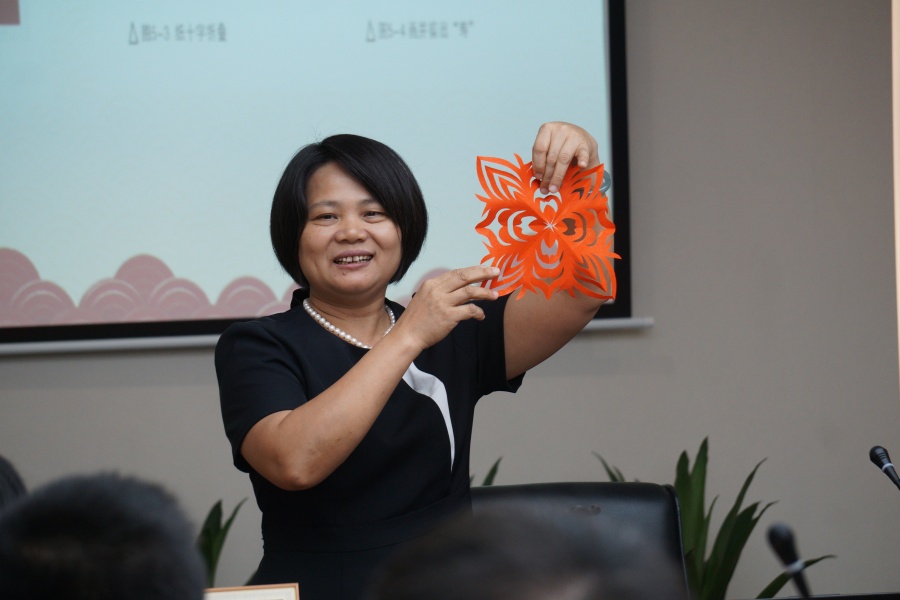 许遵英是高级工艺美术师,也是第一批国家级非物质文化遗产广东剪纸(潮阳剪纸)省级代表性传承人。记者了解到,为了前来为心青年授课,许遵英当天专程一早出发,乘坐高铁从潮州到广州,课程结束后又赶回潮州。为什么愿意不辞辛劳赴约、义务授课,许遵英解释道:“作为广东汕头潮阳剪纸省级传承者,我希望做好剪纸文化的传承工作,让更多的人了解中国传统的民间剪纸文化,并且将其发扬光大,让其走入千家万户。”
