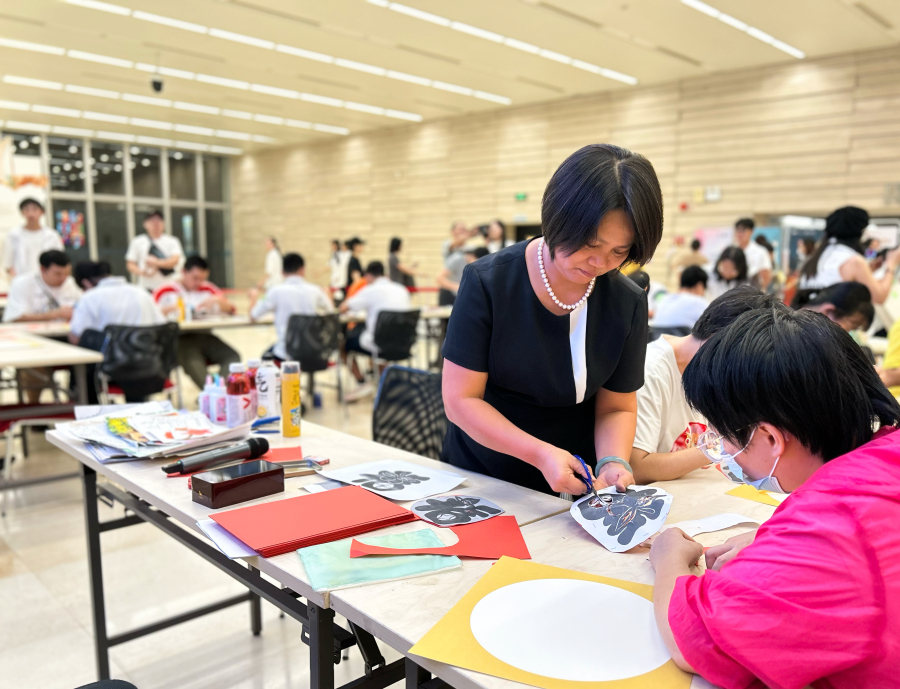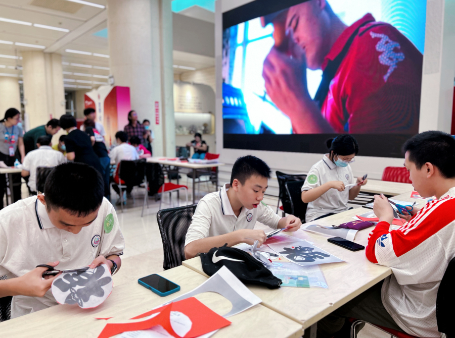 临近重阳节,一场融合心青年和中学生的“敬重阳”剪纸共创活动在广州图书馆负一层大堂举行。当日专程从潮汕前来的剪纸非遗传承人作为特邀嘉宾为大家上了节生动的剪纸公开课。