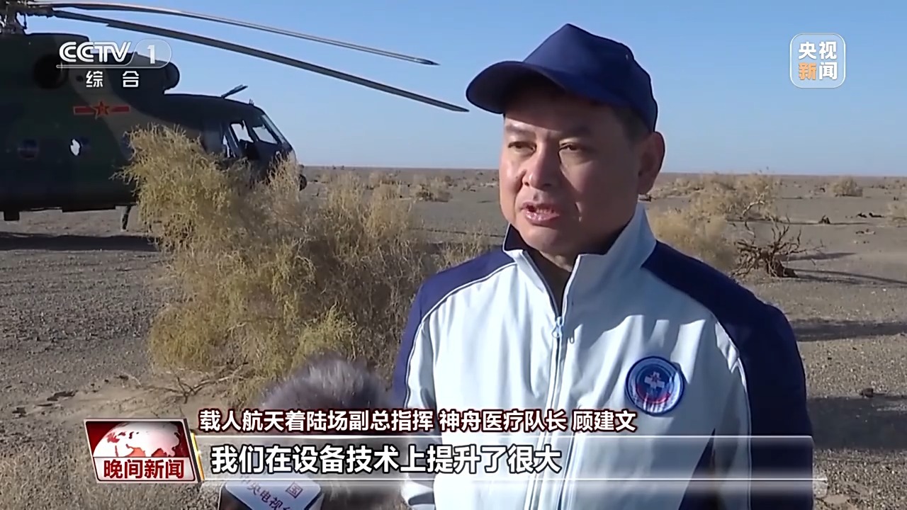 载人航天着陆场副总指挥 神舟医疗队长 顾建文:我们在设备技术上提升了很大,组织了很多相关的、新的一些检查,更新了更年轻的队员,学历高、能力强。能够以很高的积极性来完成这个任务。