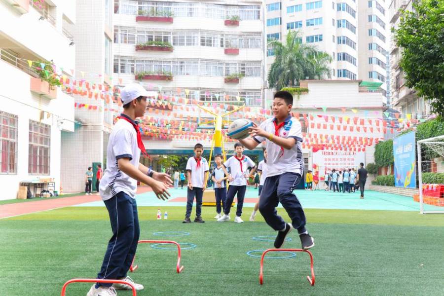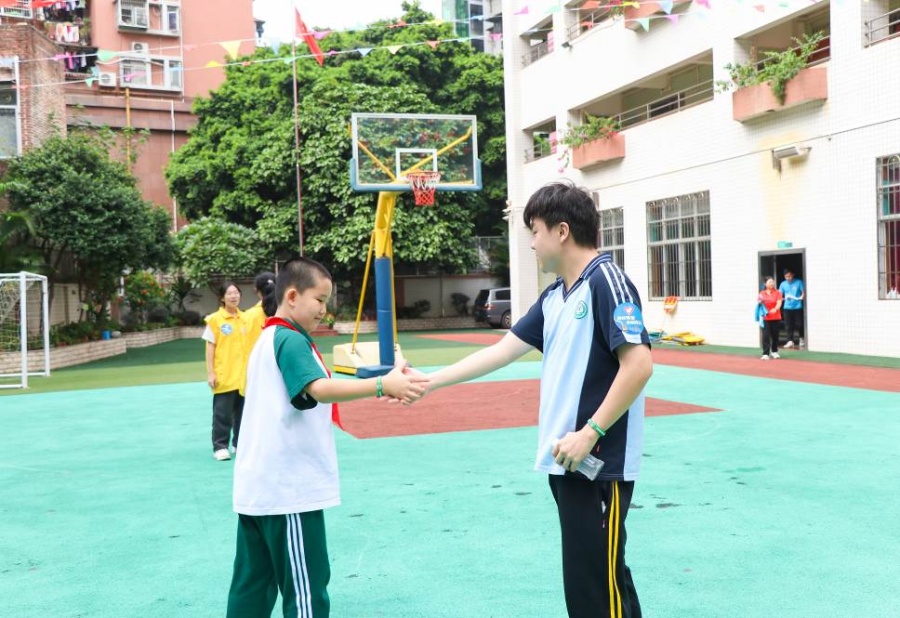 运动会在越秀区启智学校进行。当天,在广州阳光助残志愿服务总队志愿者的陪伴下,广州市回民小学、越秀区红火炬小学的孩子们与越秀区启智学校的孩子们共同体验了旱地冰壶、短跑接力赛、趣味棒垒球、飞盘等体育竞技项目。