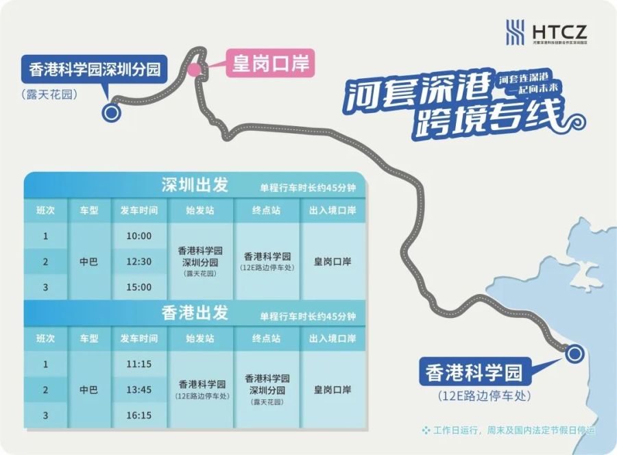 据了解,为推动河套合作区深港跨境便利通行,河套合作区深港跨境直通巴士专线由福田区联合市外事保障中心推出。目前河套深港跨境巴士专线穿梭于香港科学园深圳分园至香港科学园,始末站为香港科学园深圳分园至香港科学园,出入境经皇岗口岸,单程行车时长约45分钟,每天三班次往返,采取园区乘车“白名单”机制。试运行期间,园区“白名单”科研机构人员采取预约制等方式免费乘坐。