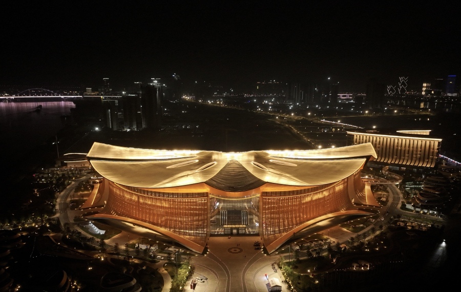 作为IFF永久会址的核心,国际会议中心内设主会场、宴会厅、理事会议厅、多功能厅等45个大小会议厅及展厅,主会场与宴会厅可容纳多达2000人同时使用。走进主会场,满洲窗造型天花板、瓦楞穿孔铝板墙面既有满满的中国元素,又使得整个会场开阔舒适。