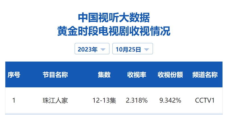 信息时报讯(记者 管安琪)由杨烁、张翰、郭晓婷、曹骏、于震领衔主演的电视剧《珠江人家》正在央视一套黄金时间热播。据中国视听大数据发布的最新数据,该剧以2.318的收视率稳占黄金时段电视剧日榜首位。