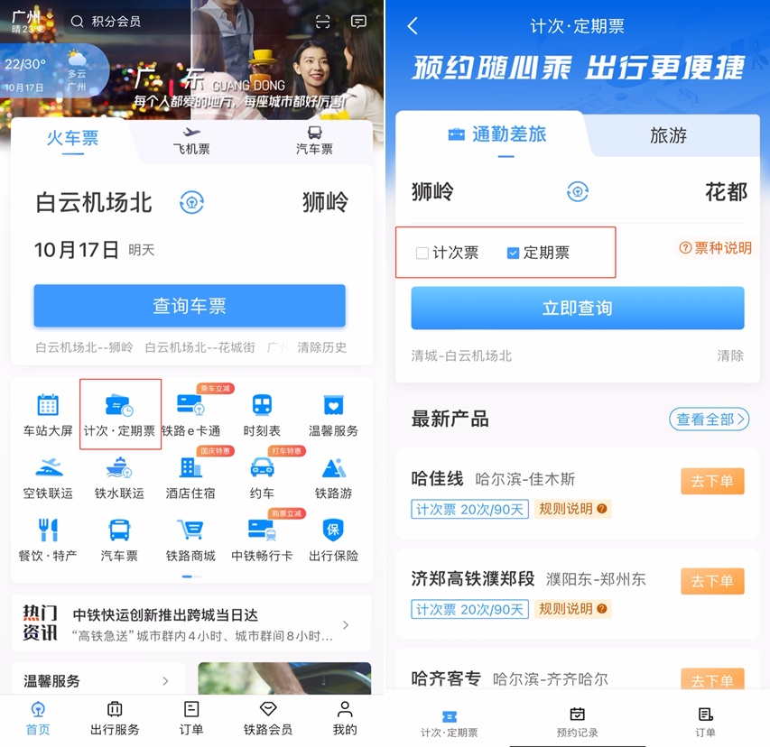 为进一步提高旅客乘车便利,10月30日起,广清、广州东环城际推出“计次票”和“定期票”两种新型优惠票,为固定始发终到站通勤旅客带来实实在在的福利。此外,列车运行图将于同日进行调整,按照日常和高峰两个时段的时刻表开行。