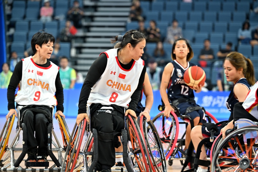 女子轮椅篮球比赛。 “所有运动员很快又要‘动起来’,备战巴黎残奥会了”,他说,“有比赛,大家更有状态。赛练结合,以赛代练,相信接下来的比赛更值得期待。”