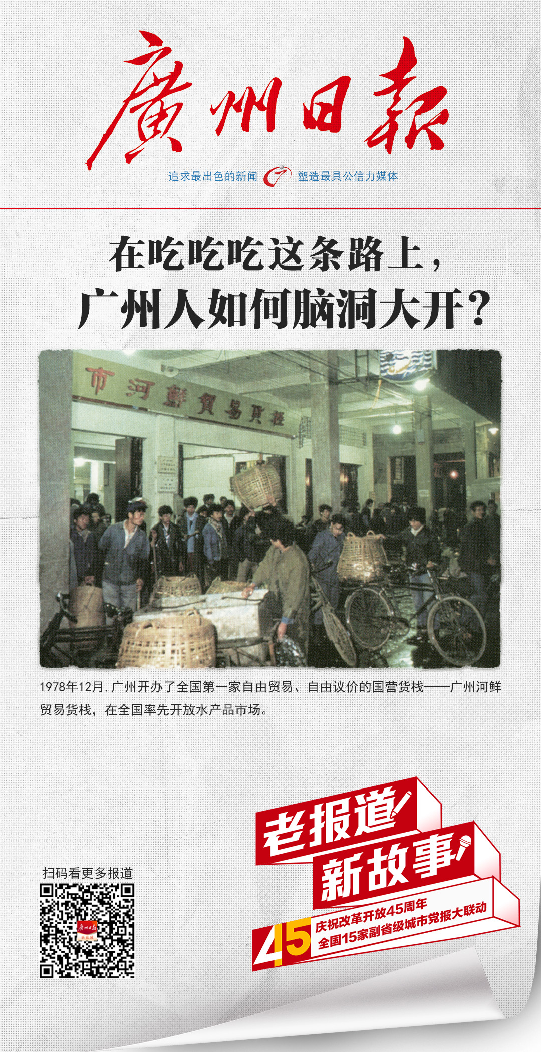 45年前,广州从水产品流通体制这个突破口开始,迈开了农副产品放开价格的第一步,成为全国第一个解决“吃鱼难”的大城市。如今,来自世界各地的食材在广州人的餐桌上变成美味佳肴。从“一尾活鱼”到“买卖全球”,舌尖上的幸福成为广州改革开放成果的生动写照。