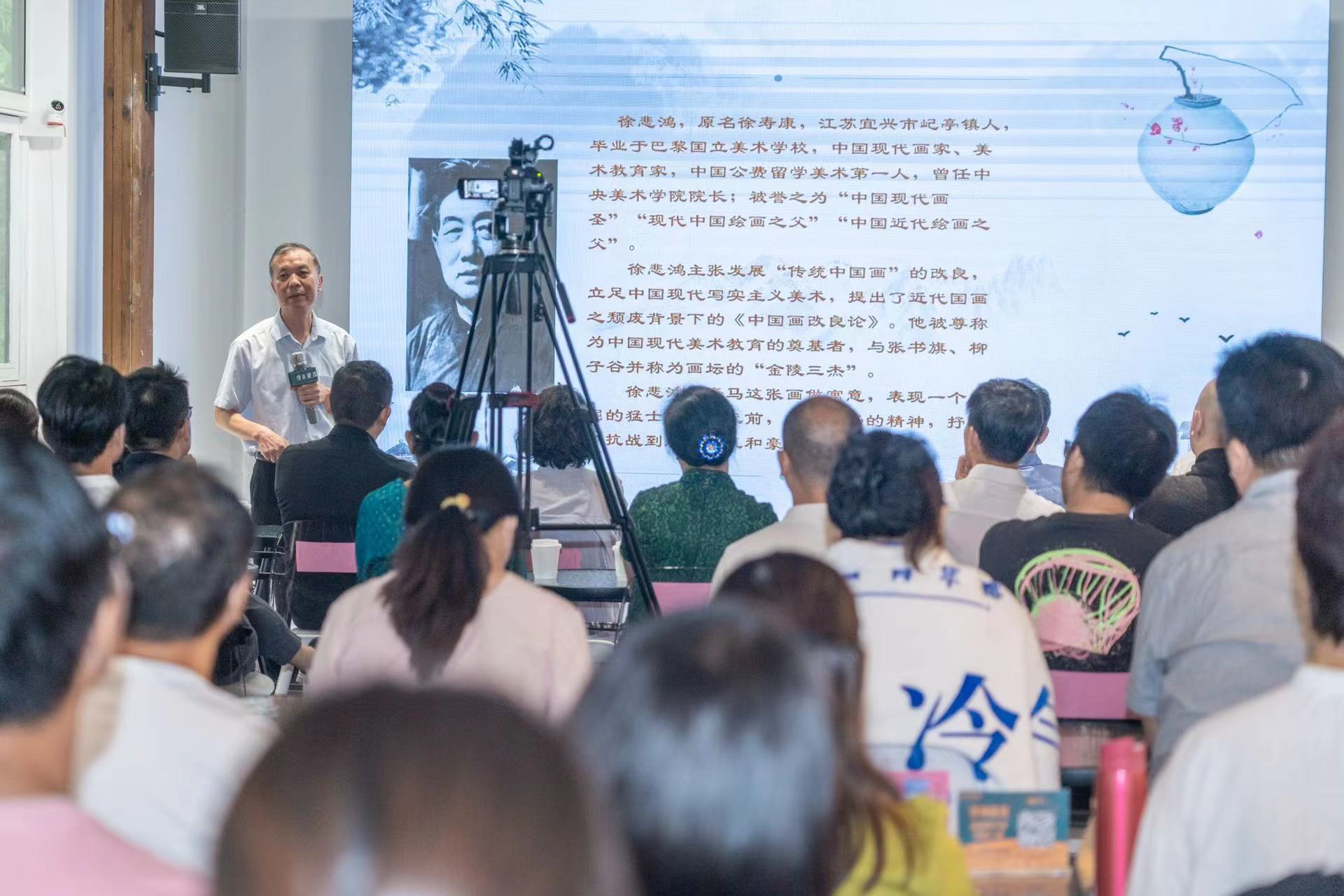 顾作义从这首《画》切入,介绍了自己对中国绘画的概括:中国画集诗、书、画、印于为一体,融合了中华民族思想精神、哲学思维、传统技法,是一门造型艺术、时空艺术、视觉艺术,具有形态美、意境美、精神美。