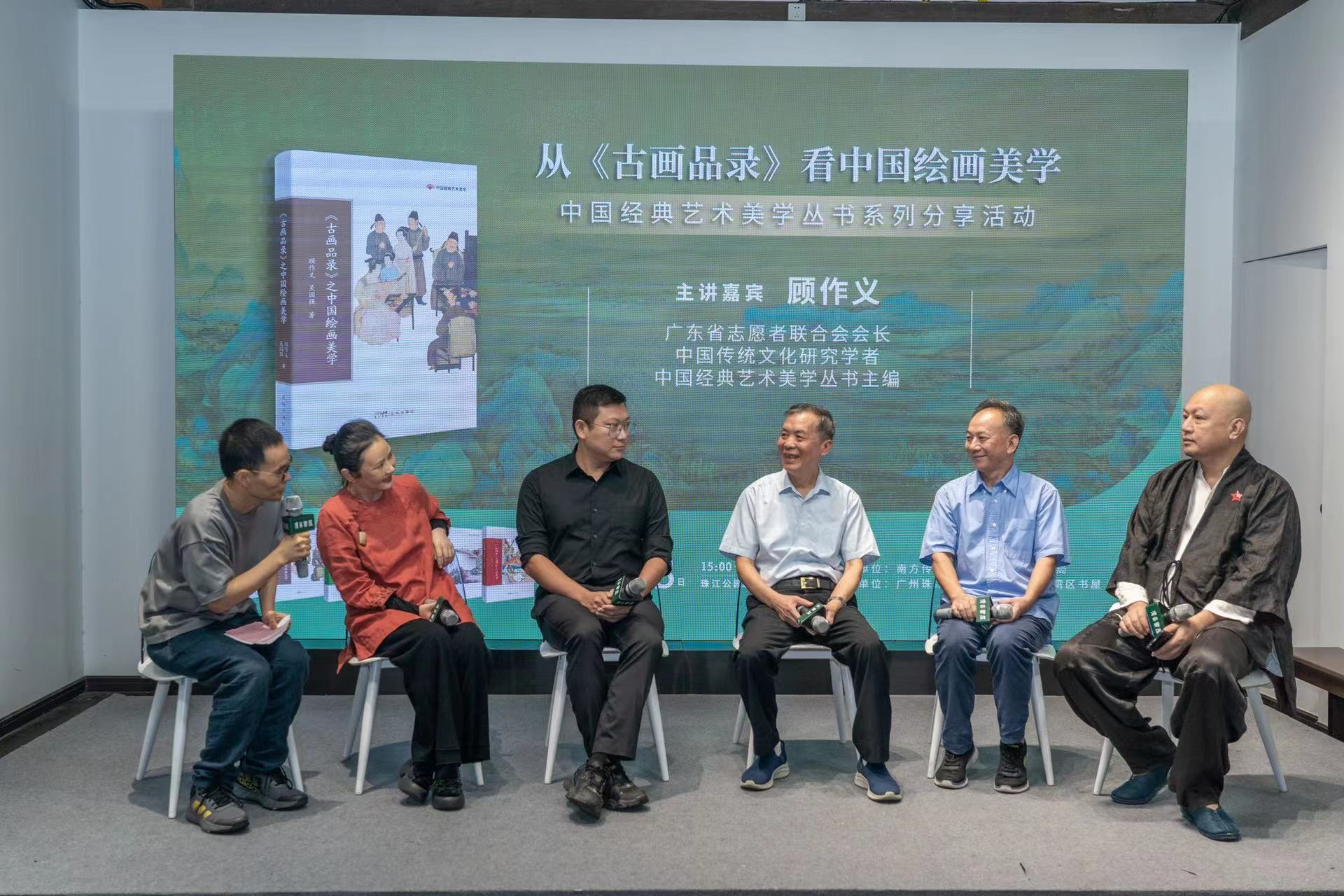 10月28日,“中国经典艺术美学”丛书主编、广东省志愿者联合会会长、中国传统文化研究学者顾作义来到珠江公园湾区书屋,围绕丛书中的《〈古画品录〉之中国绘画美学》一册,图文并茂、深入浅出地介绍了《古画品录》中所揭示的中国绘画美学的“道”与“法”。广东省评协大家艺术欣赏品鉴会主席洪楚平、广东省女画家协会主席孙洪敏、广州美术学院中国画学院中国绘画研究中心主任王艾等业界、学界嘉宾出席活动。