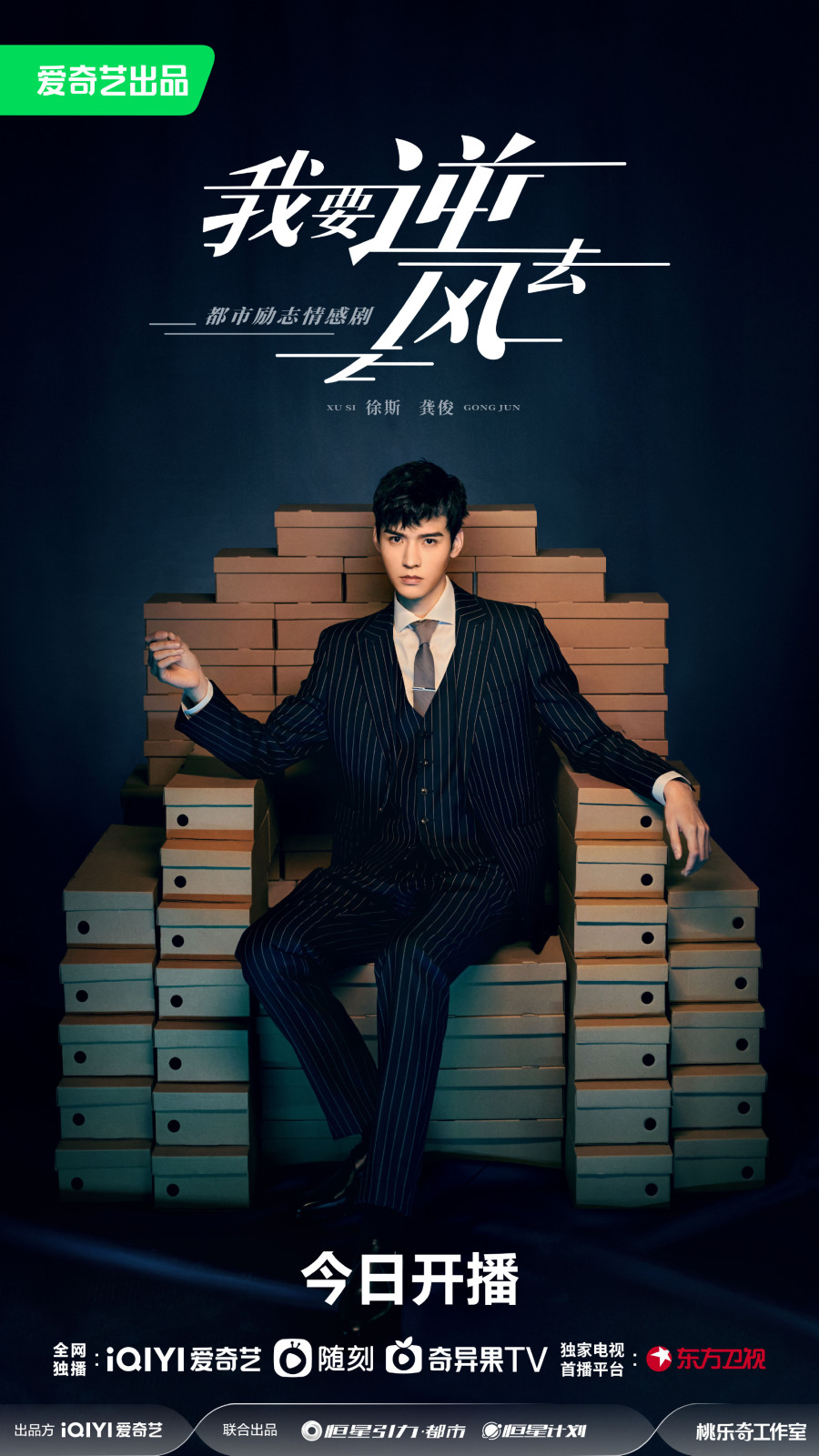 《我要逆风去》海报发布以后,男主角徐斯(龚俊 饰)和女主角江湖(钟楚曦 饰)的角色形象引发好评。据悉,剧中,他们将演绎棋逢对手式爱情及励志向上的创业故事。