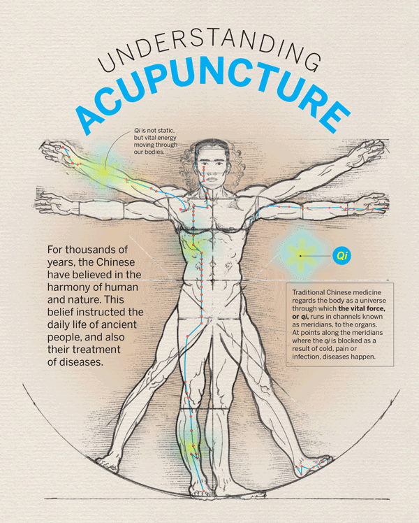 In addition, based on strict randomized controlled trials conducted by researchers around the world, acupuncture has been found effective in treating conditions such as chronic severe functional constipation, female stress urinary incontinence, and migraine, Jing says.