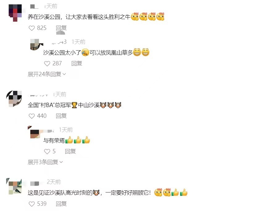 很快就有更多网友呼吁:“这是见证沙溪队高光时刻的牛,一定要好好照顾它!”“养着吧,千万别杀它,太有意义了!它代表了沙溪精神,不服输的精神,勇往直前的精神!”“养起来,让大家去看看这头胜利之牛!”