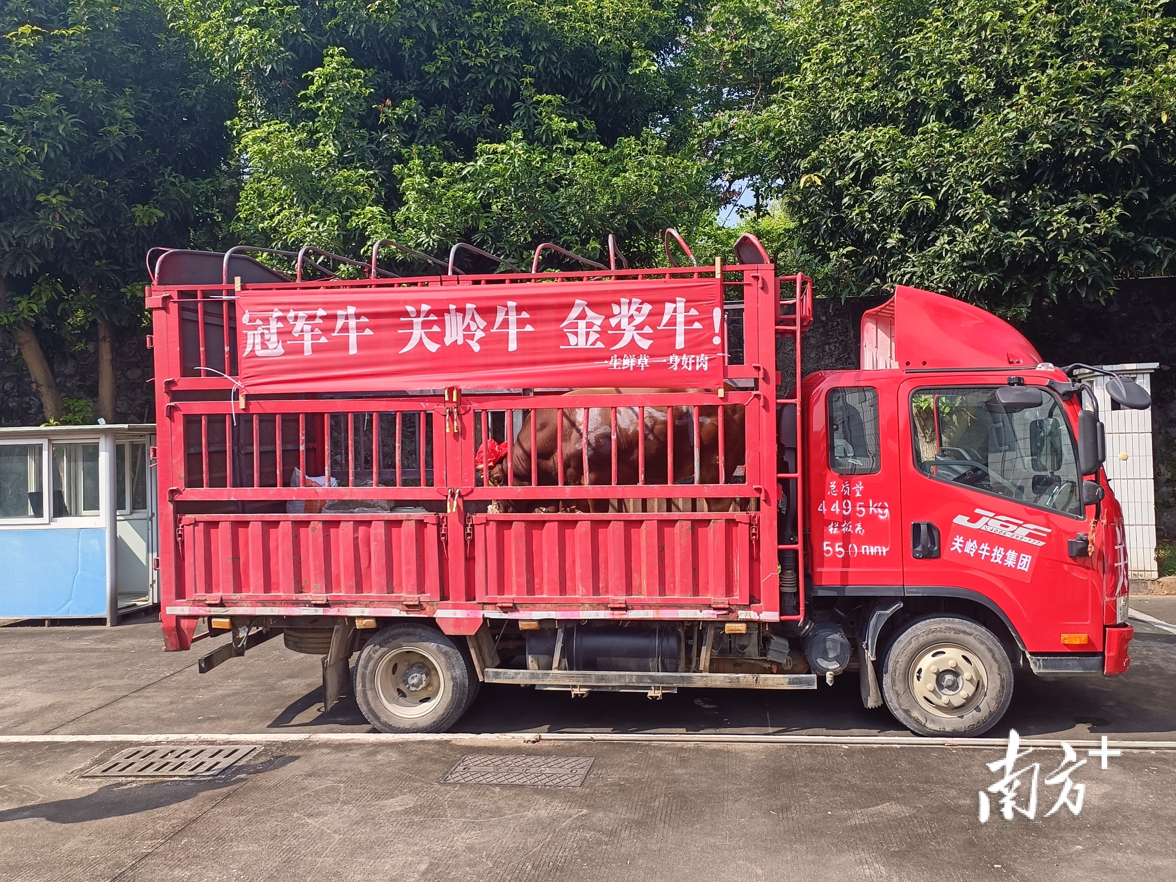 10月30日下午,运载冠军牛的车辆抵达中山市沙溪镇凤凰山公园。 南方+ 卢子衡 拍摄