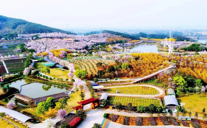 绿水青山,展现的是乡村的生态价值。除竹洞湖外,赤坭镇内古树大道延绵数十公里,绿树成荫,四时常绿,处处皆景。锦山村森林覆盖率超过35%,是国家级的森林乡村。蓝田的志惠农场有着广州市种植面积最大、保存最完好的紫荆花种植基地,曾登上央视栏目的《春天的中国》。