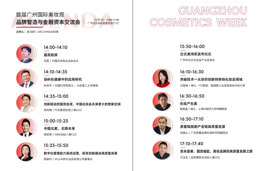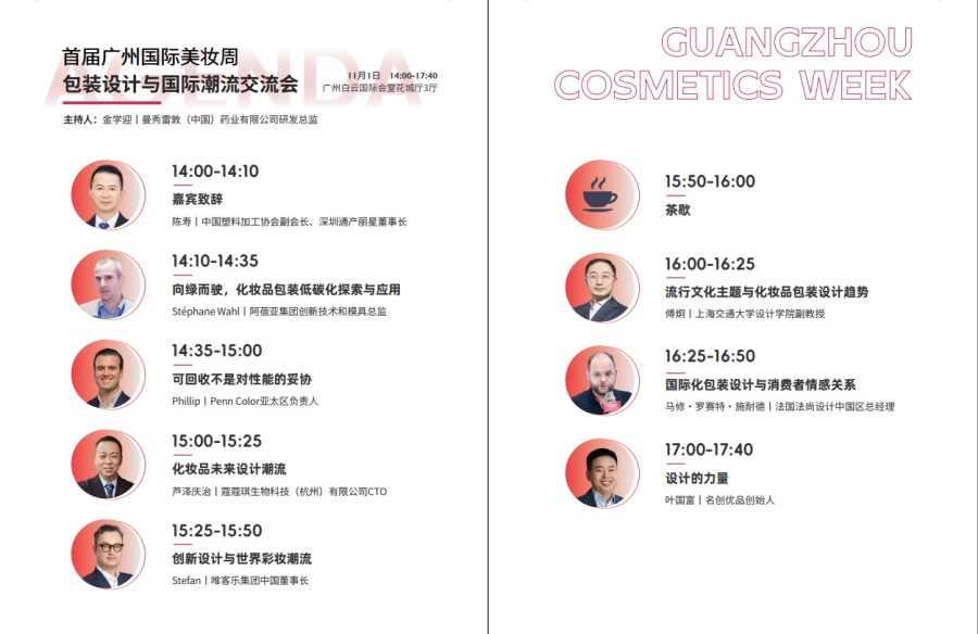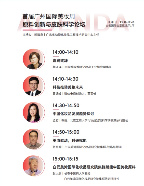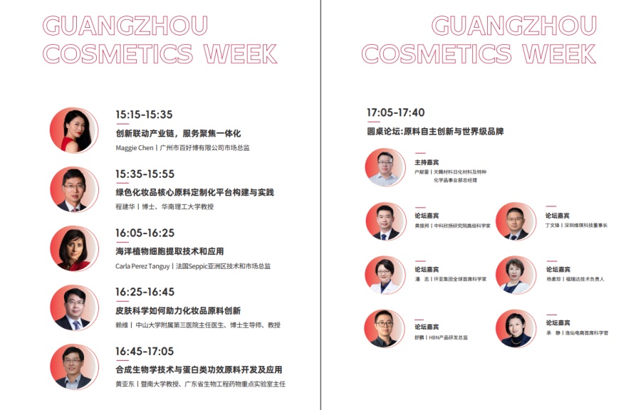 同时,大会还将搭建产学研交流平台,将举办原料创新与皮肤科学、包装设计与国际潮流、品牌智造与金融资本、品牌出海与全球化四场分论坛,行业各位专家将广泛探讨美丽健康产业变革升级的历程,通过智慧交锋、资源共享、积极构建化妆品产业新生态,共商广州化妆品产业高质量发展大计。