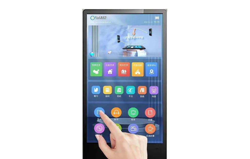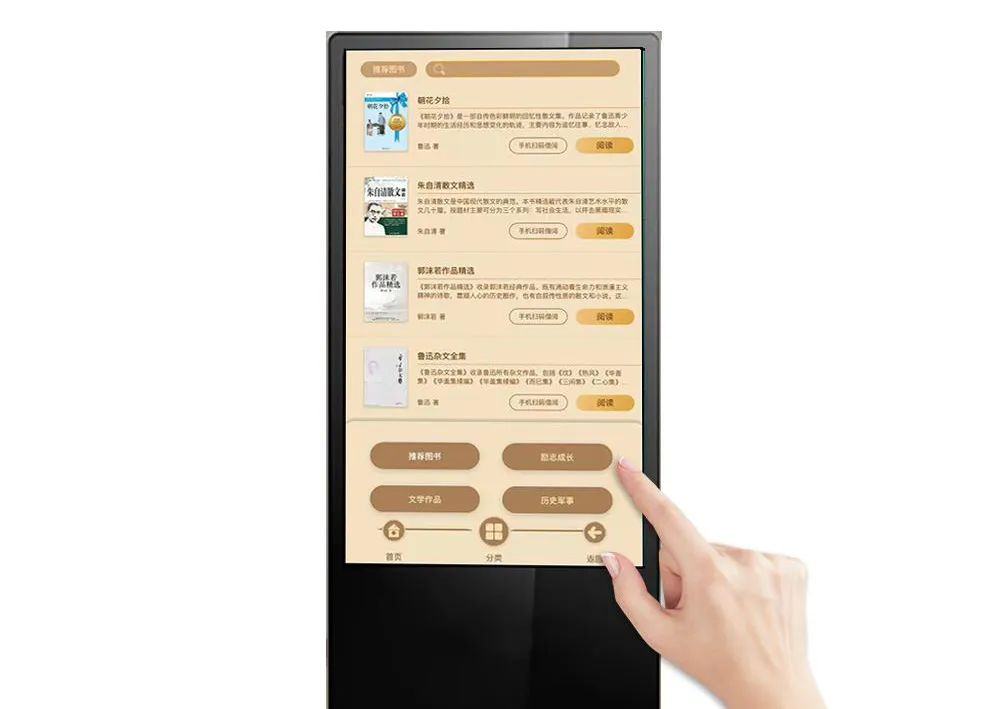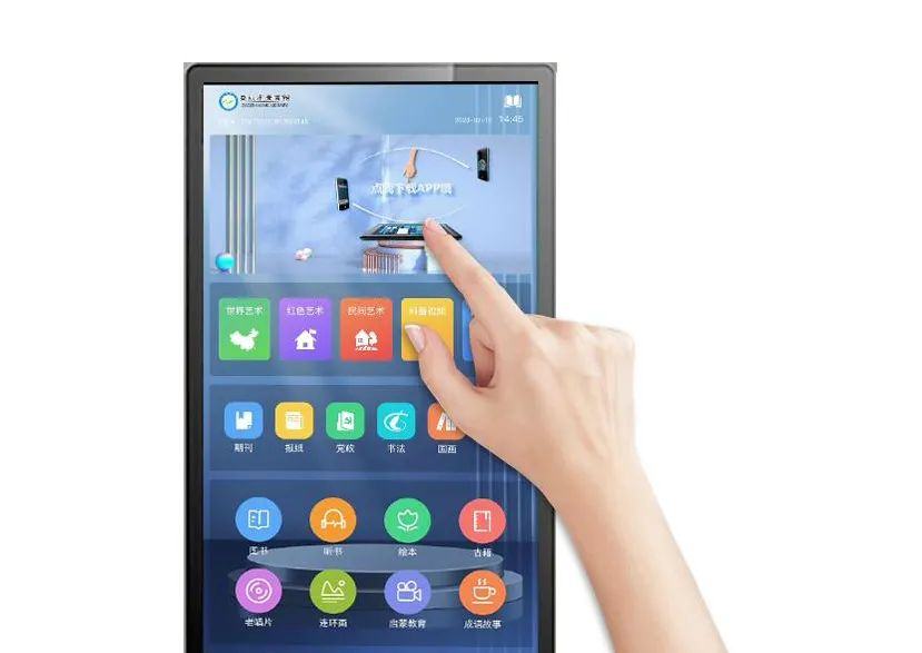 而在其左手边这台轻薄的电子借阅机,则有书法、国画、戏曲、期刊、绘本、唱片及启蒙教育等多元类别电子资源,能覆盖多年龄段读者需求。
