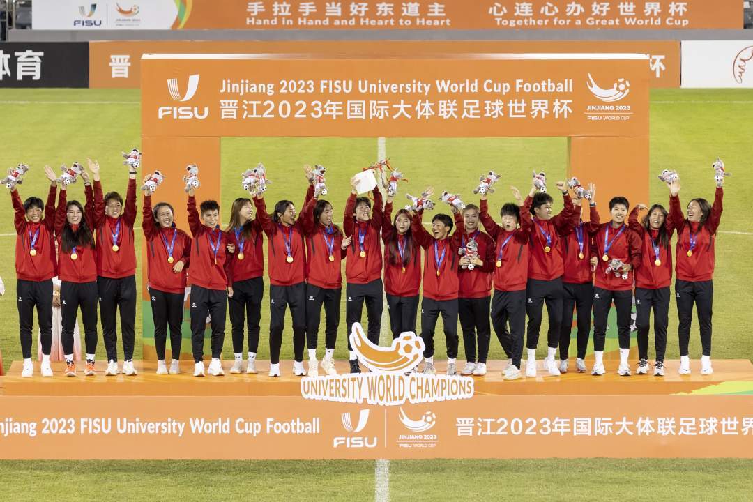 10月31日晚, 2023年国际大体联足球世界杯在晋江市足球训练中心闭幕。本届比赛,北京师范大学女子足球队夺得女子组冠军,巴西保利斯塔大学男子足球队获得男子组冠军。