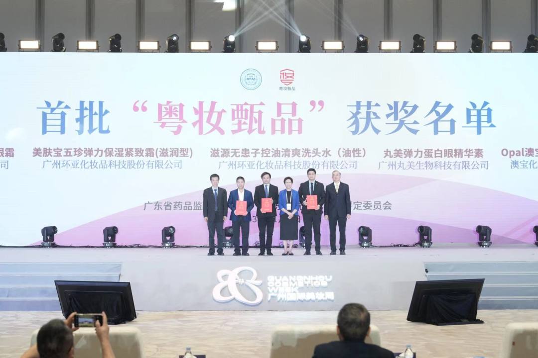 5款“粤妆甄品”4款来自广州!11月1日,首届广州国际美妆周在广州白云国际会堂盛大开幕。在化妆品高质量发展大会上,广东省药品监管科学学会会长谢志洁公布了首届广东省优质化妆品“粤妆甄品”的评选结果。现场,相关领导为广州丸美生物科技有限公司、广州环亚化妆品科技股份有限公司、澳宝化妆品(惠州)有限公司等三家获奖企业颁奖。