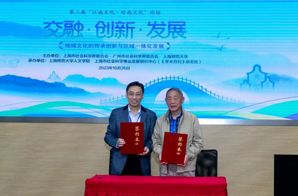 信息时报讯(记者 李晓雯 通讯员 吴晴)10月26日,第二届江南文化·岭南文化论坛在上海师范大学举办。本次论坛由上海市社会科学界联合会、广州市社会科学界联合会、上海师范大学共同主办,上海师范大学人文学院、上海市社会科学事业发展研究中心承办,华南师范大学岭南文化研究中心协办。