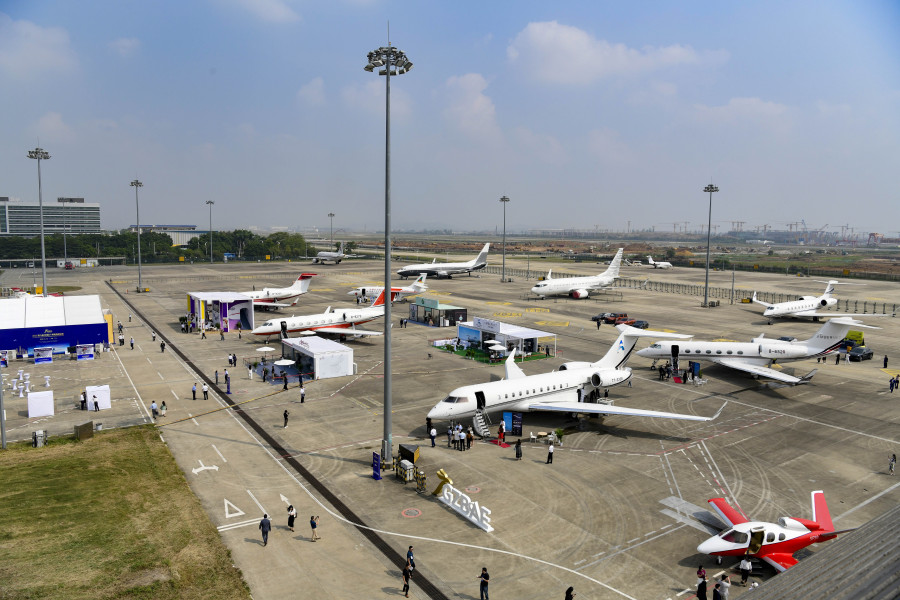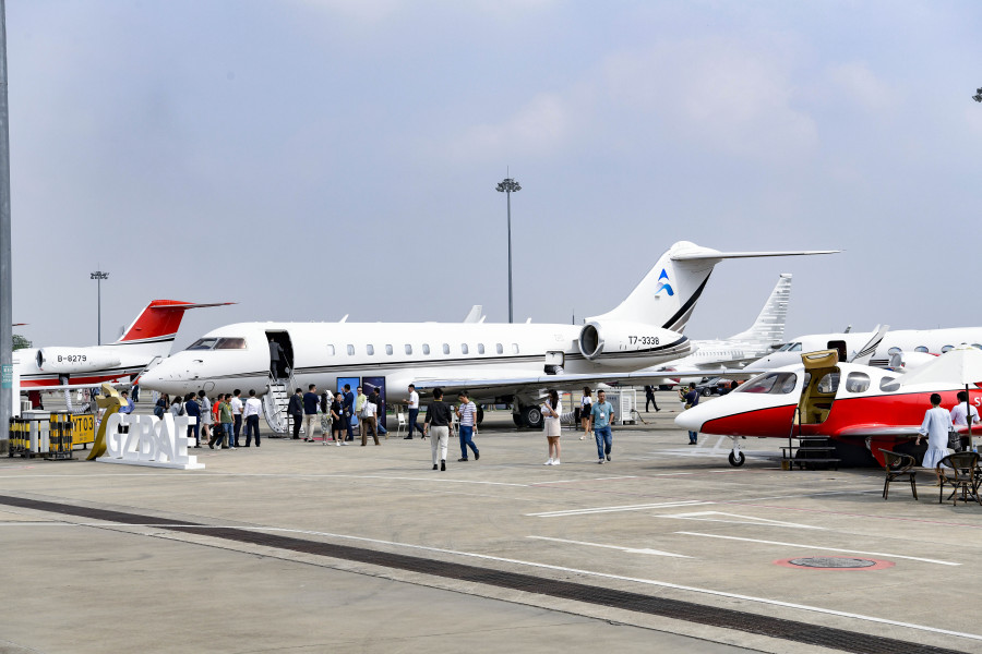 11月2日,第六届(中国)广州商务航空展(简称“广州航展”)在广州白云国际机场商务航空服务基地召开,多款飞机亮相现场,引参展者驻足观望,一批“中国造”公务机新成果公布,助推粤港澳大湾区乃至全国商务航空行业高质量发展。