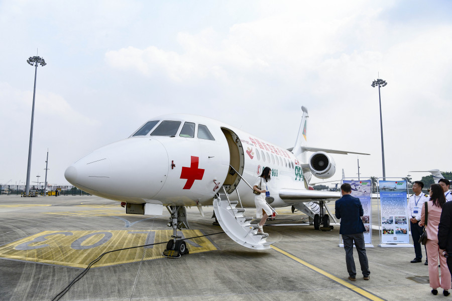 北京999急救中心的工作人员告诉记者,该中心的航空医疗救援飞机已经多次参加广州航站,这次派出的是达索猎鹰2000LX专业航空医疗救援固定翼飞机,最大航程可达7408公里,最高时速为926公里,宽大的客舱可为医护人员提供更大的空间救治患者,最多可承载两位病患、乘客数量四到六人。