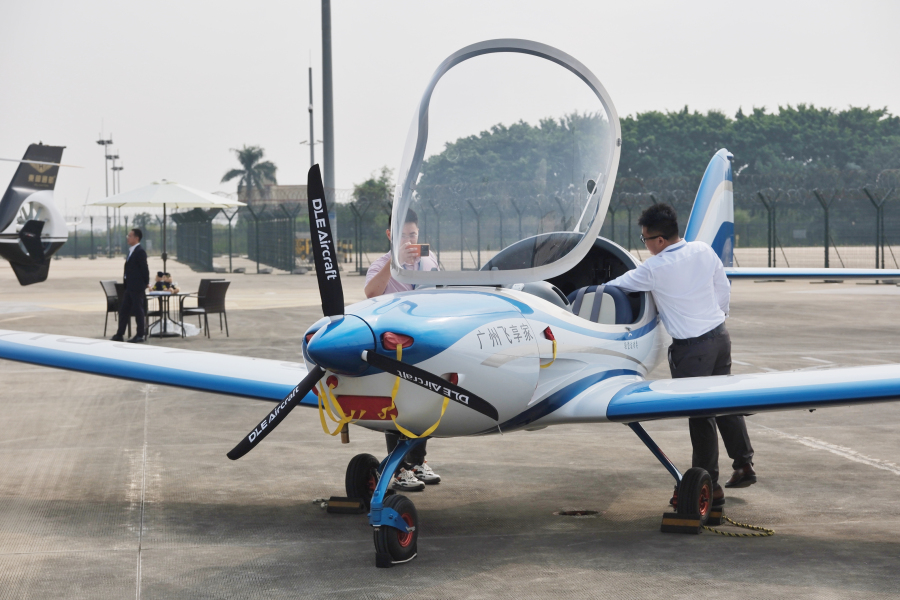 本次航展还首次出现了提供飞行执照培训的通用航空公司参展。据广州飞享家通用航空有限公司联合创始人曾琪琪介绍,该公司目前的飞行基地位于清远,距离广州市区仅一小时车程。“我们公司今年是第一次获邀参加广州商务航空展,来感受下氛围。目前来咨询飞行驾照培训的,从17岁到70多岁的人都有。我们的客户群体有大学生、商务人士,只要是喜欢飞行的人,都可以来圆飞行梦。”
