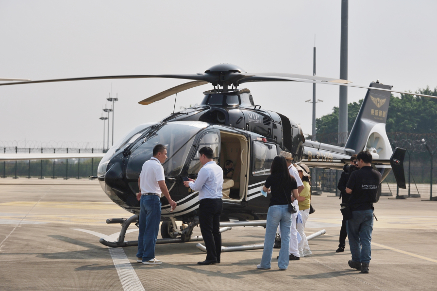 东部通航的一名机务人员告诉记者,该公司的直升机已多次参加广州航展,主要开展商务出行、空中旅游、应急救援等服务。这次来参展的空客直升机从深圳飞到广州大约40分钟,包机费用每小时约6.8万元人民币,目前飞行线路在大湾区城市间比较多,也有跨境飞行服务。今年的业务量明显比去年增加了不少。