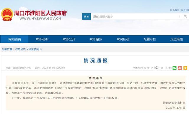 淮阳区一位不愿具名的官方人士称,“误以为收割完了跑进地里捡漏”不是哄抢白术的理由。此事暴露出区秋收管理不力。即日起,该区将加强秋收管理。“区里正在布置,多部门组成工作专班,建立长效机制,确保秋收安全。”