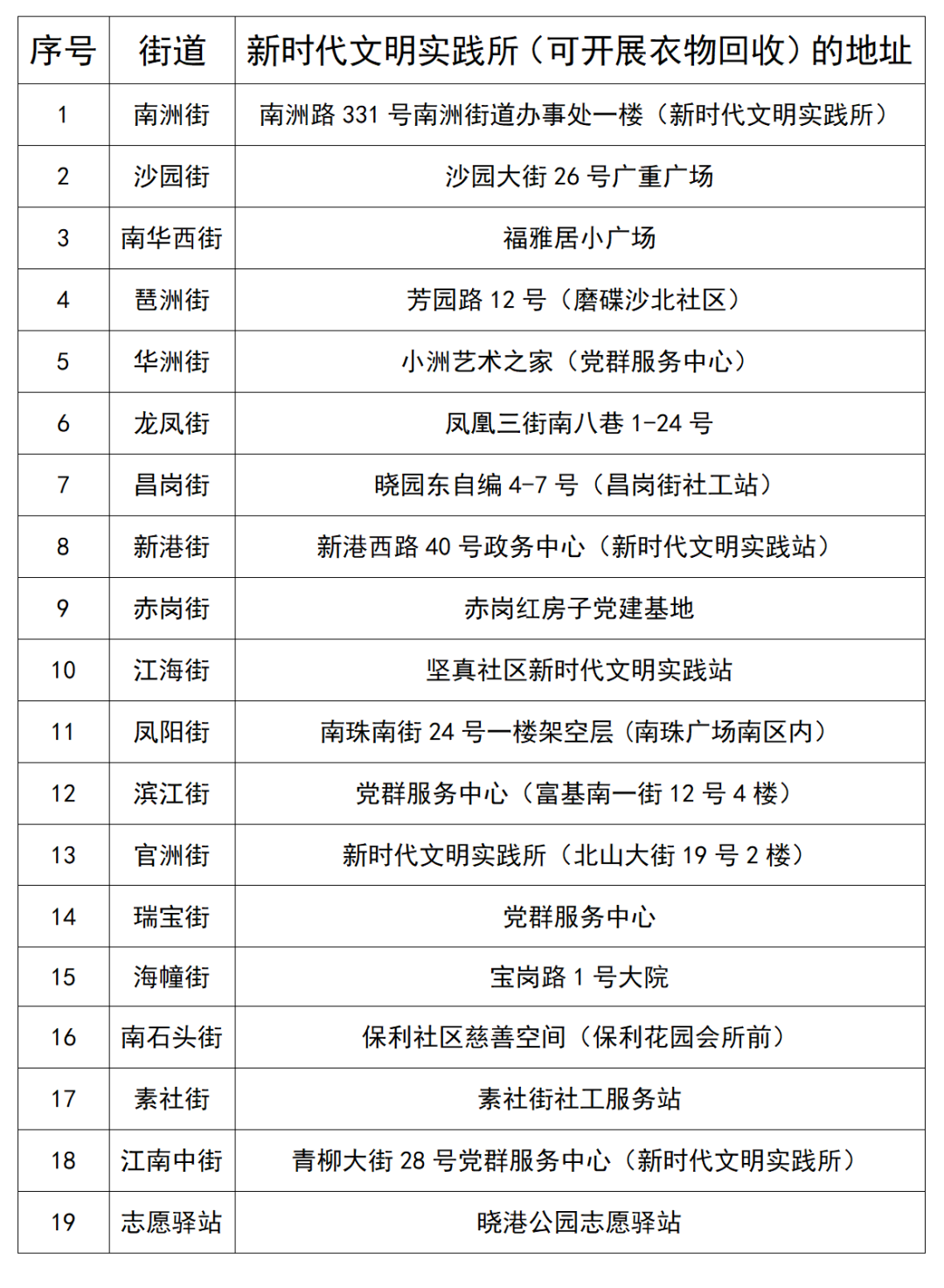 海珠区各街道相关站点
