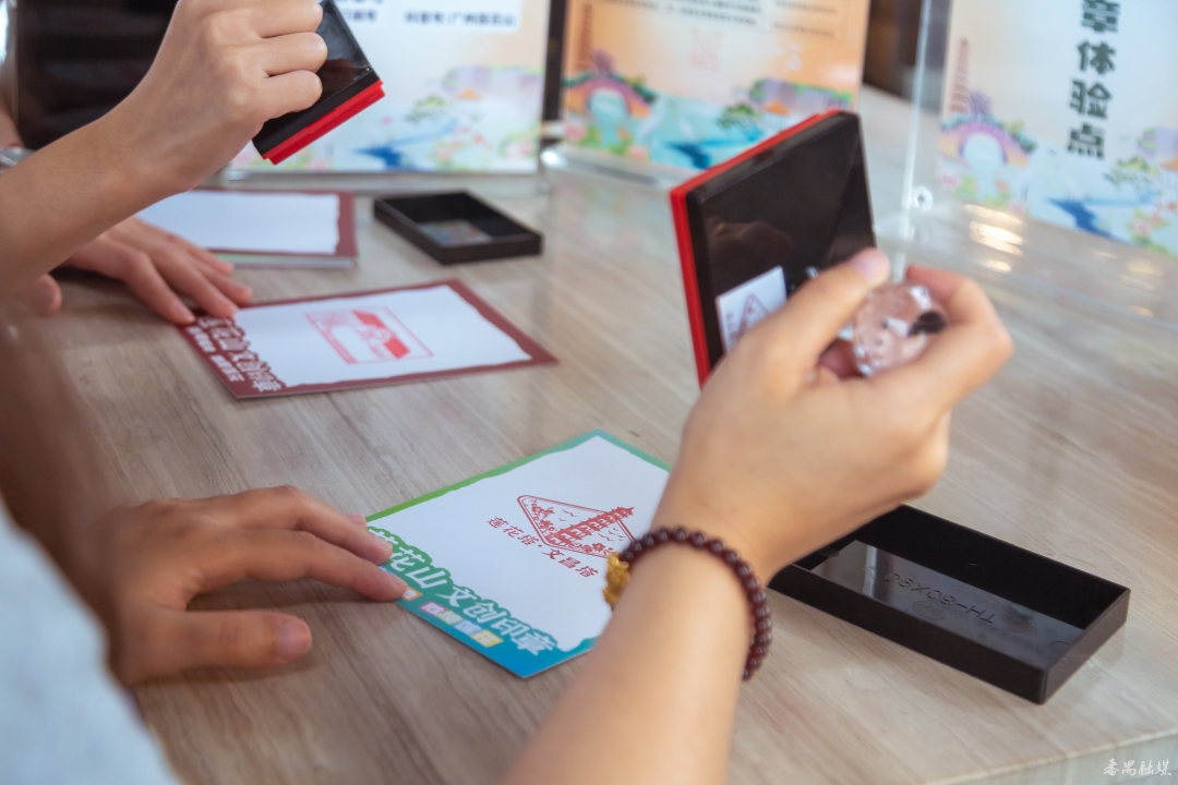 买一本文旅印章本,每到一处旅游景区都会在本子上盖上文创印章;或是到一处地方旅游,买一本特色的印章本、明信片等,然后在明信片上收集当地景区景点的文创印章……近年来,越来越多的年轻人选择通过盖章打卡的方式来记录、纪念自己的旅行,他们一边游玩,一边盖章,既赋予旅游仪式感,也能从印章中了解历史、增长见识。记者了解到,近期,莲花山旅游区、沙湾古镇、岭南印象园等番禺多个景区也推出“盖章打卡”服务,为游客解锁旅游新玩法。