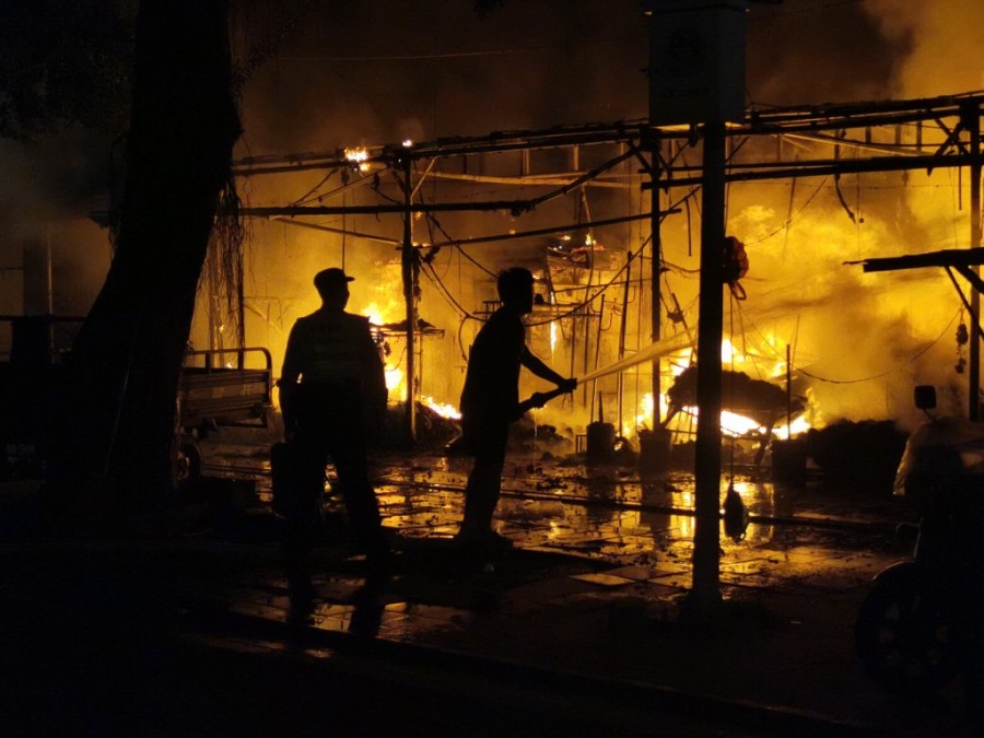 事发在10月29日凌晨1时左右,佛山顺德容桂街道青华市场内的临时摆卖安置点发生火情,情况紧急!郭才伟得知情况后,来不及换衣服,穿着睡衣、拖鞋,马上前往救火。
