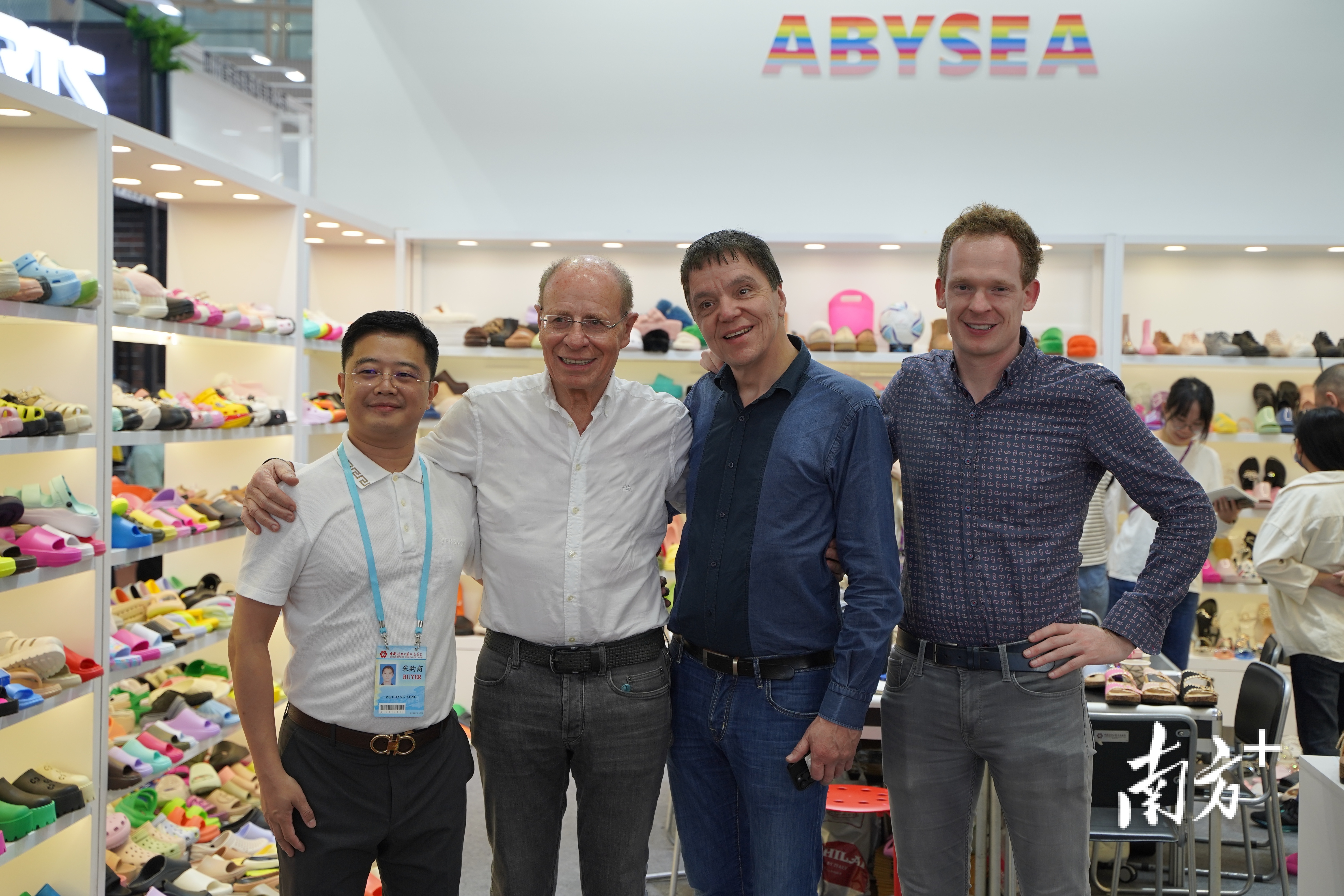 “我们自从2006年就一直合作到现在,我想我可能已经向他购买了800万双鞋子。”这已是来自秘鲁的采购商第65次来到广交会,他熟络地拥抱了曾伟良,随后在展位上拿起不同产品认真比对挑选。