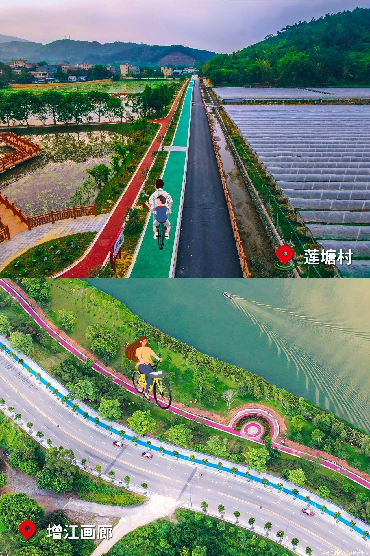 增江画廊:以水为脉,碧道为轴,两岸沿线种植四季盛开的花树,伴随着增江河的映衬,两岸犹如一幅巨型的山水画卷。