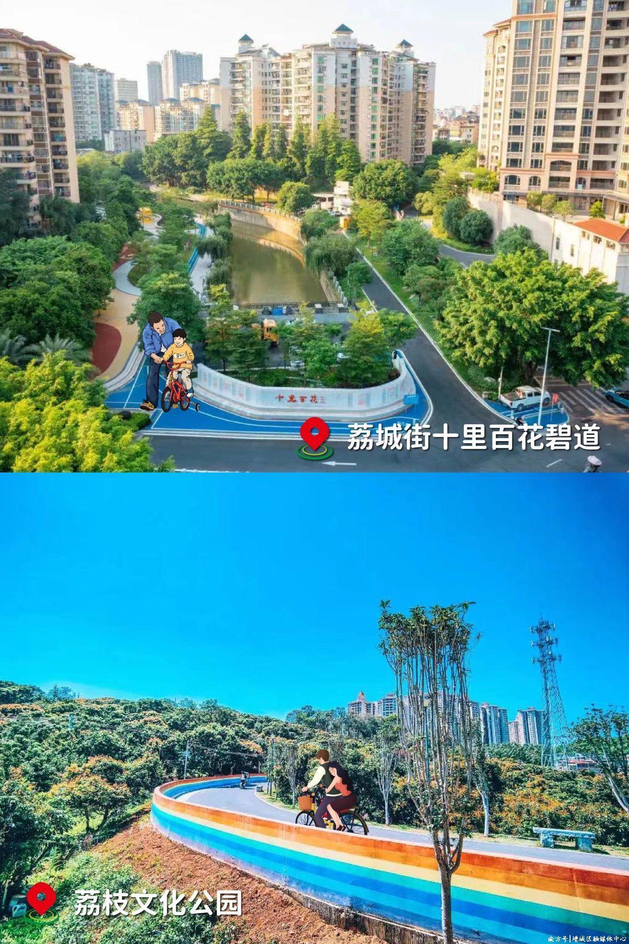 荔湖碧道:沿碧道前行,“山水林田湖”五景俱全,湖水清澈,绿树成荫,满眼皆是清幽自然。