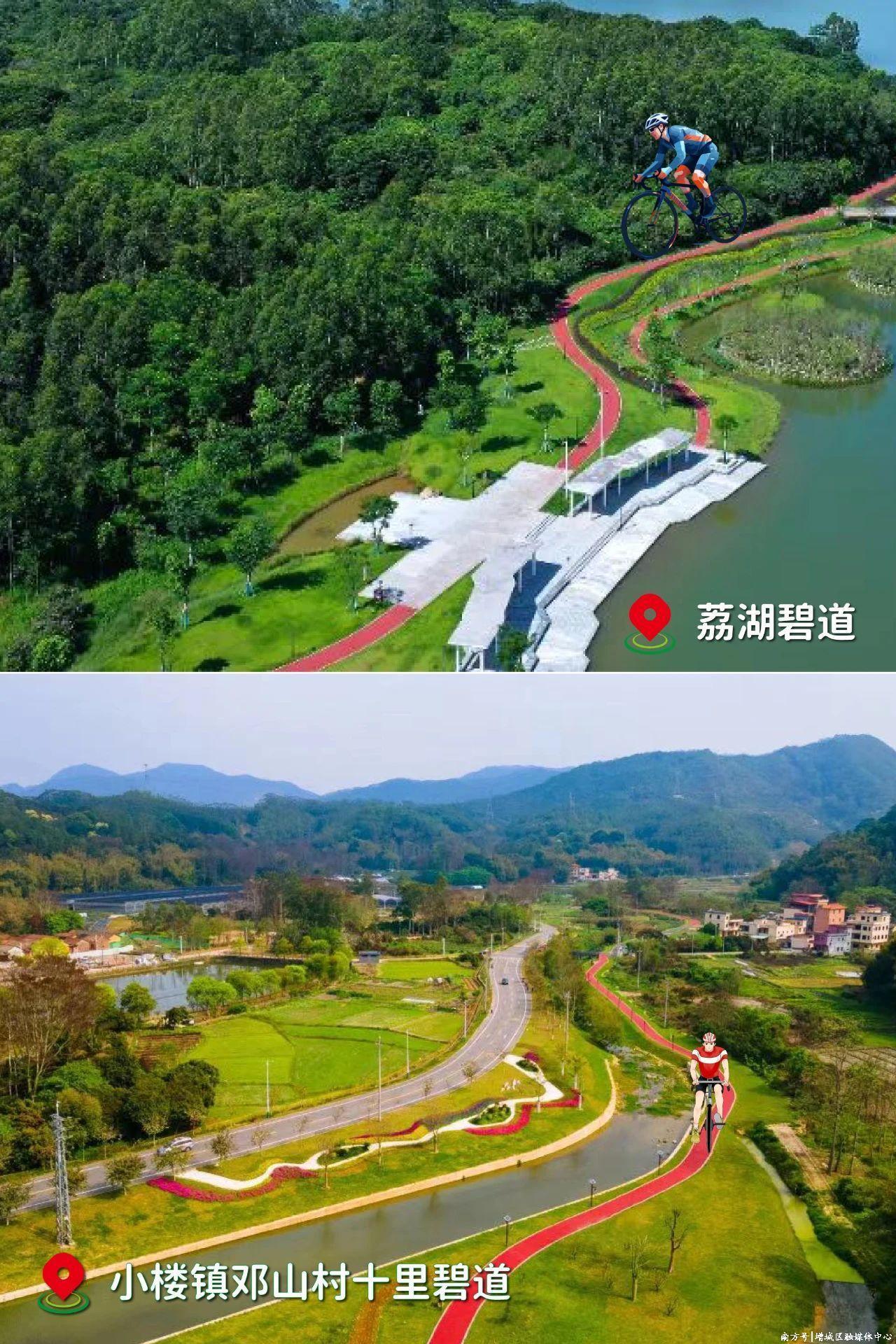 莲塘村:以绿道游、生态游闻名的小乡村,这里最具吸引力的运动就是骑行,骑行绿道两侧景色宜人,树木环绕,行至栈桥还能看到荷花池。