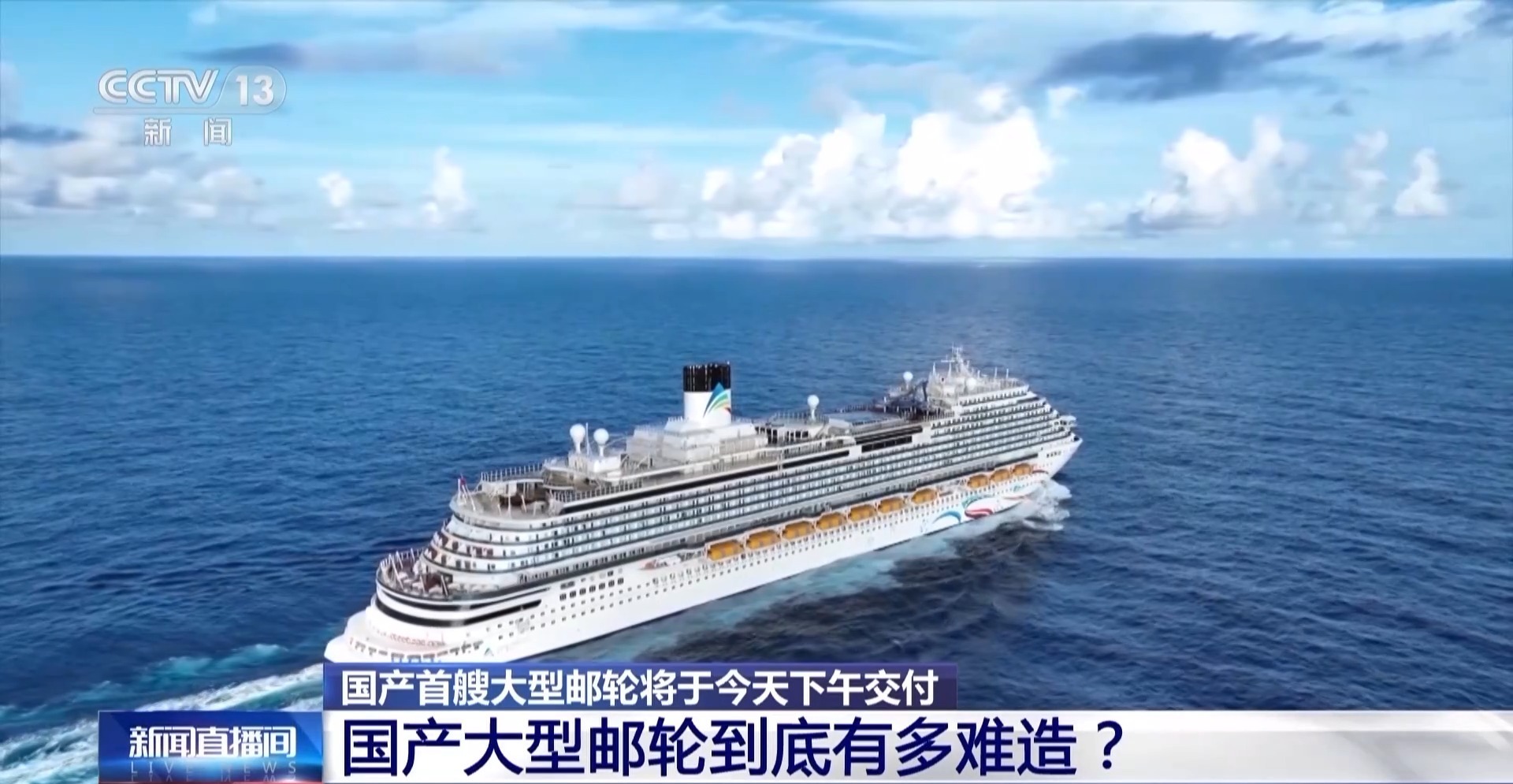 总台央视记者陶嘉树:国产首艘大型邮轮今天交付,也就意味着邮轮的装修全部完成。今天我们就一起上船看一看。