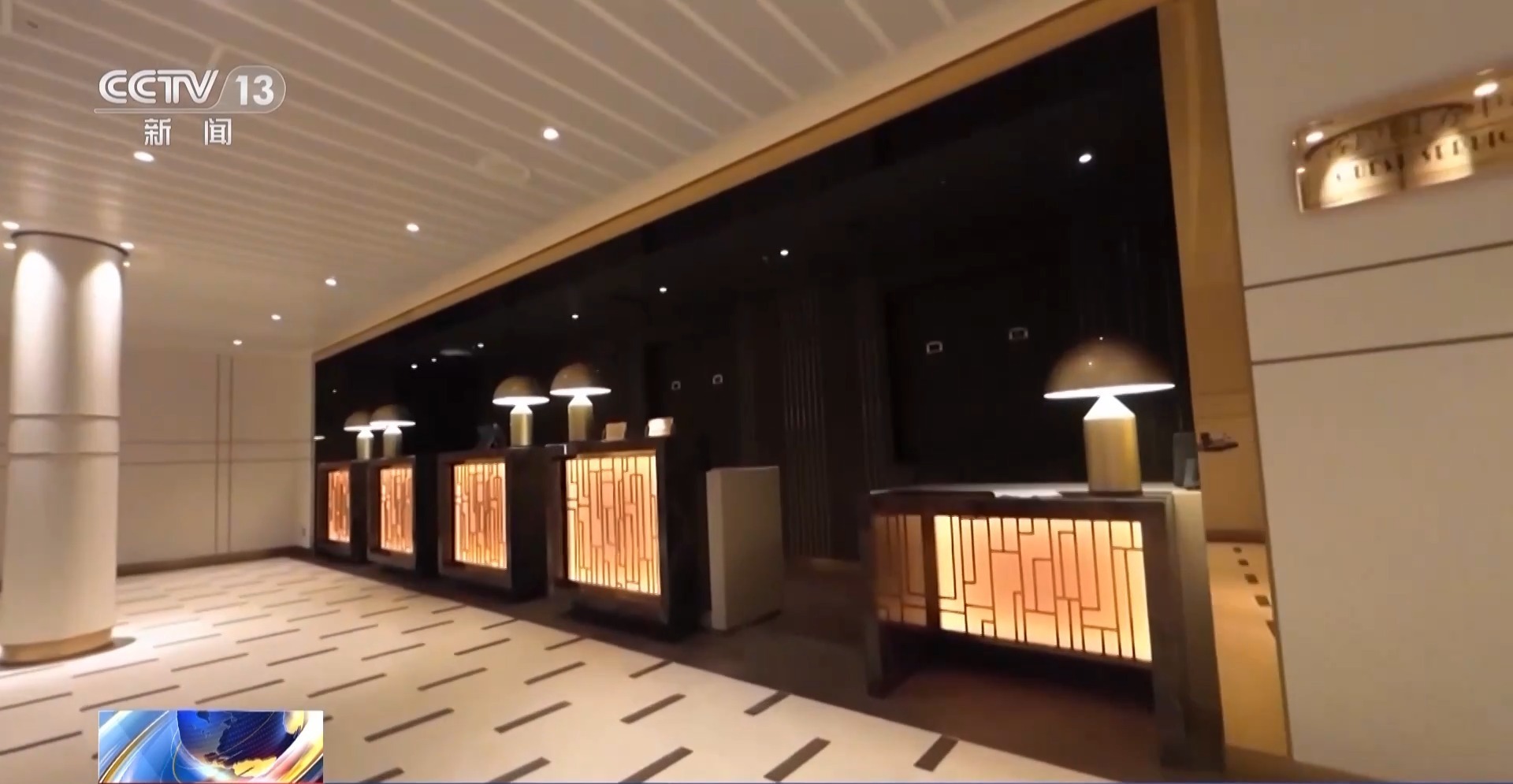 这里就是邮轮的中庭,也就是旅客上船后的第一站。旅客在登船后就会在这里办理入住。