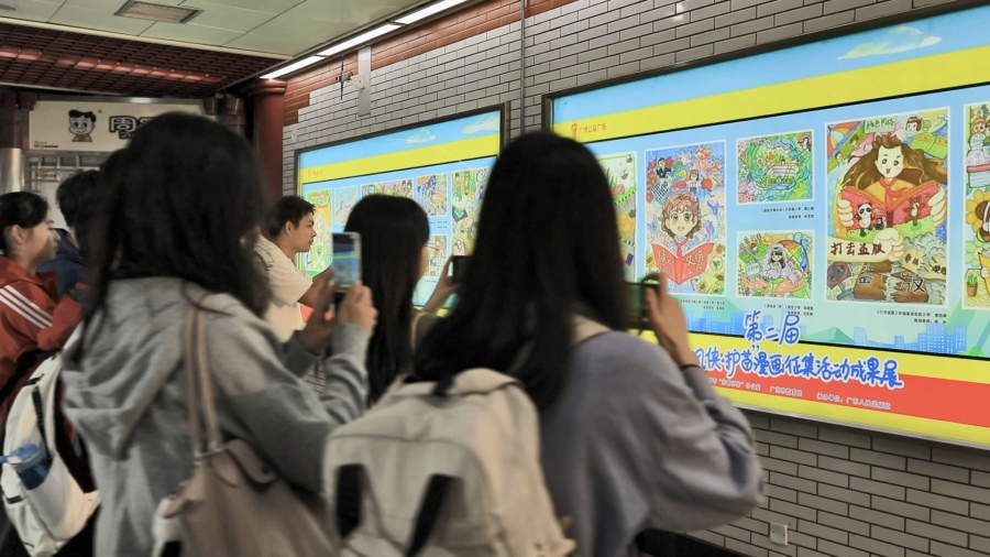 “打击盗版”“读好书上好网”“绿色阅读”“健康学习”……近日,一系列“扫黄打非”漫画作品登陆广州地铁一号线农讲所站,吸引了经过的乘客驻足观看,展览将持续一个月的时间。