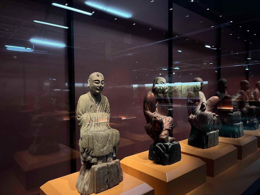 值得一提的是,展览还展出了北宋木雕罗汉像,年代为北宋仁宗庆历五年至八年间(1045—1048年),风格浑厚质朴,是我国现存北宋木雕五百罗汉造像的杰出代表。